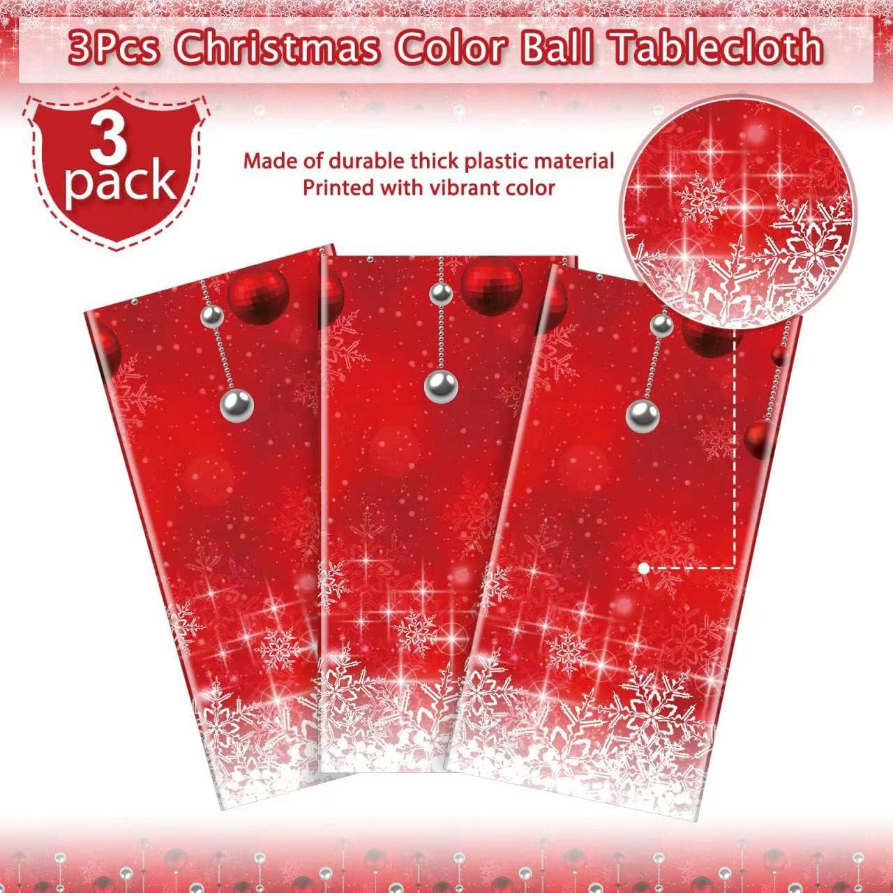 3Pieces Merry Christmas Tablecloth Plastic Christmas Tree Ball Table Cover Recta