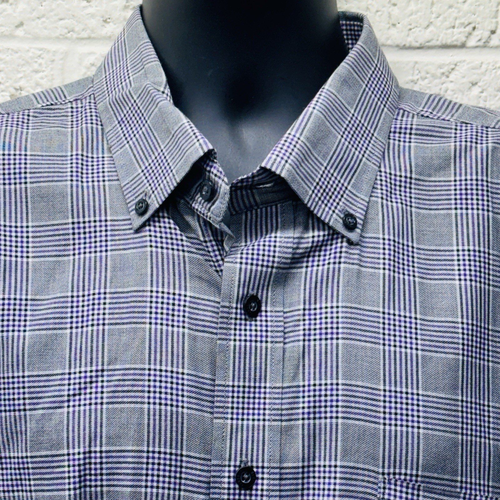 ALAN FLUSSER XL Purple Black Gray Long Sleeve Plaid Check Cotton Button-Up VG