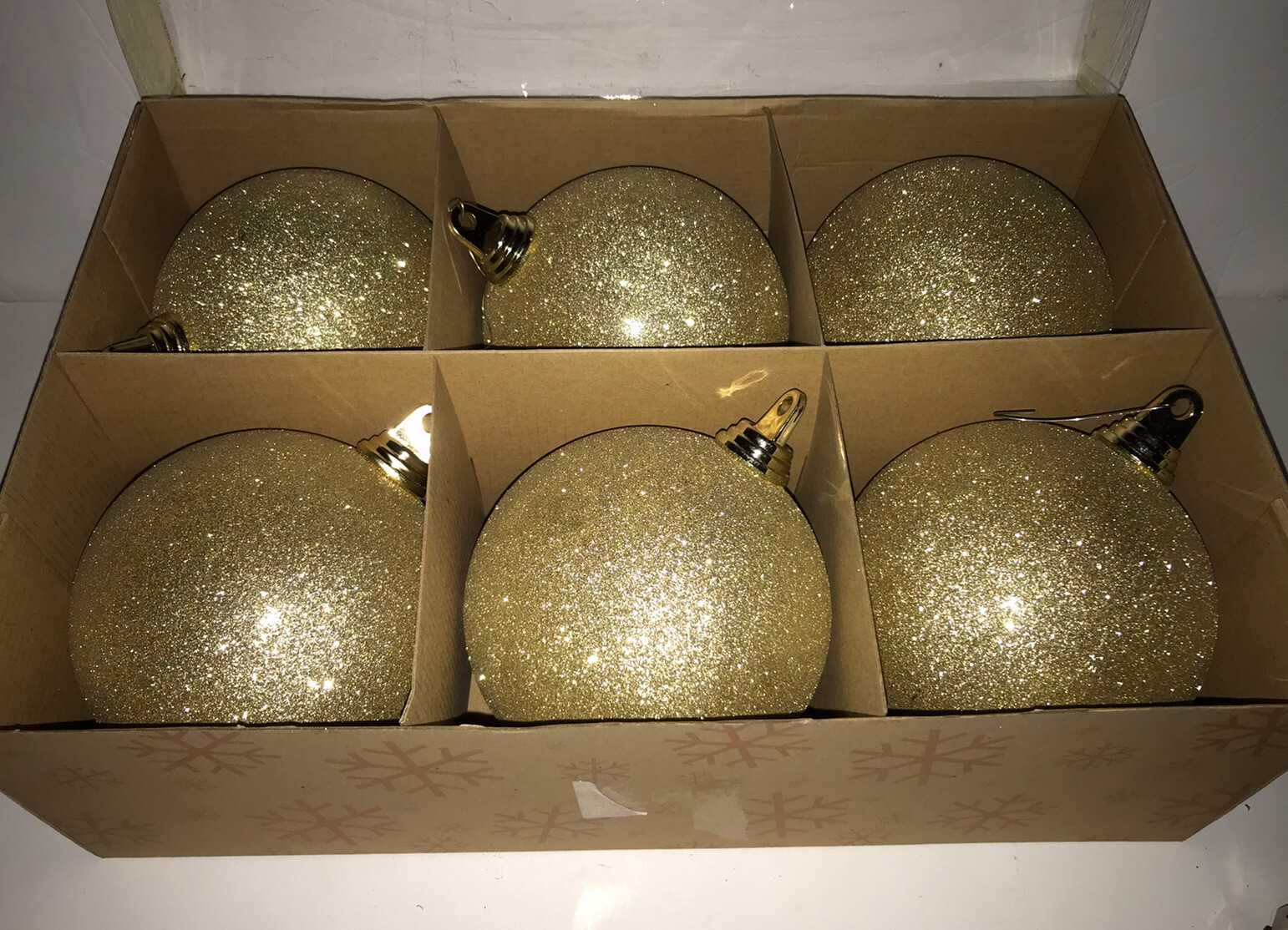 как выглядит 6 Christmas Ball Tree Ornaments 6" Shatterproof Plastic Gold Glitter фото