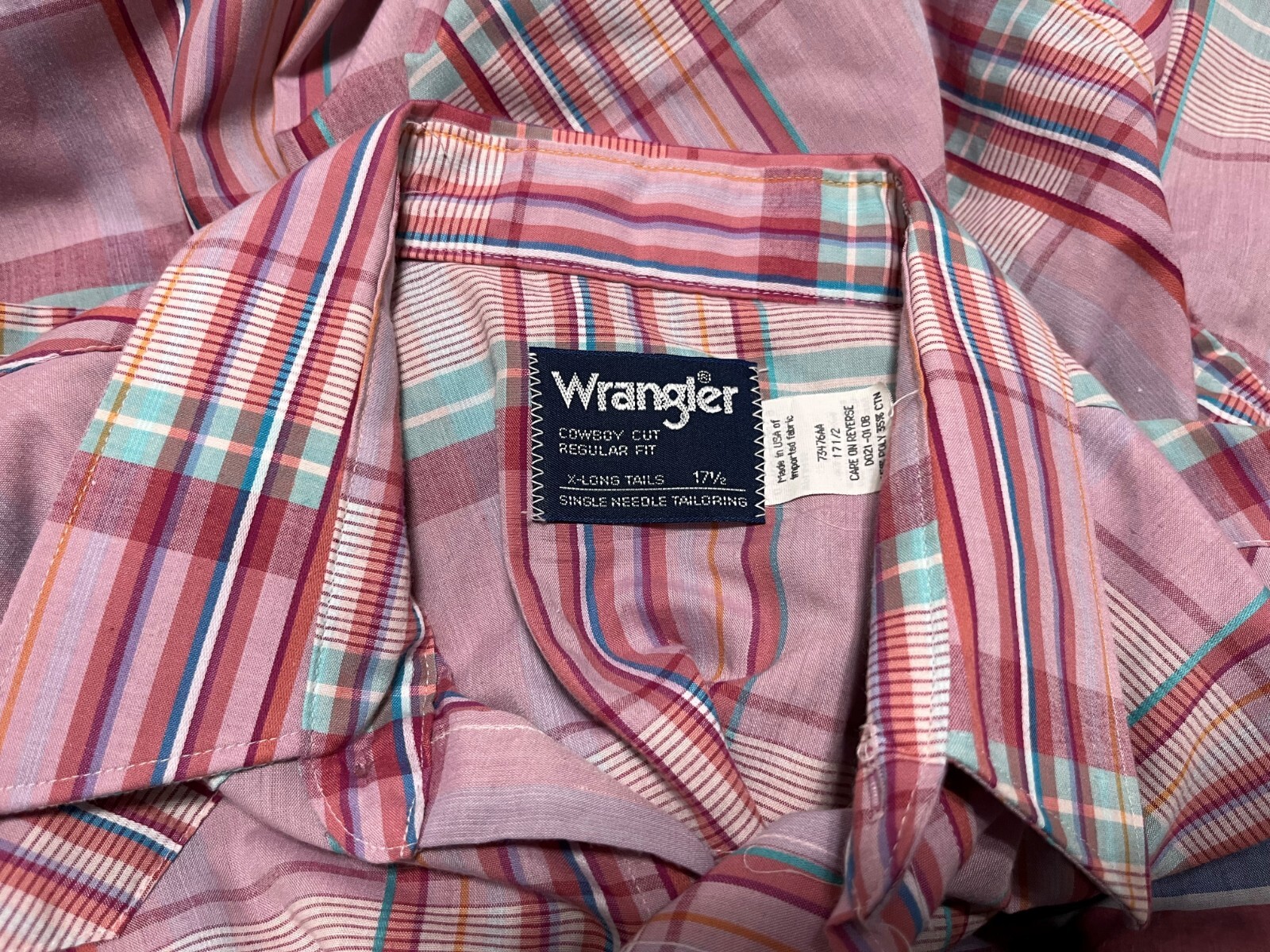 как выглядит WRANGLER Cowboy Cut Regular Fit Men Pearl Snap S/S Color Plaid Button Shirt 17.5 фото