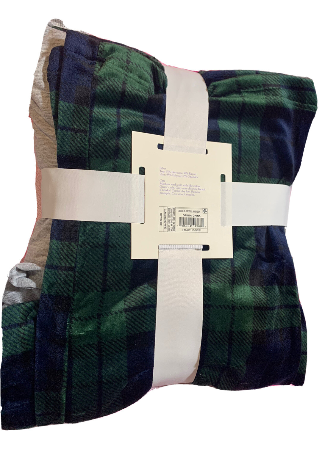 как выглядит Pajama Set Stars Above Soft Rayon/ Polyester Green Knit/ Velour Plaid M New фото