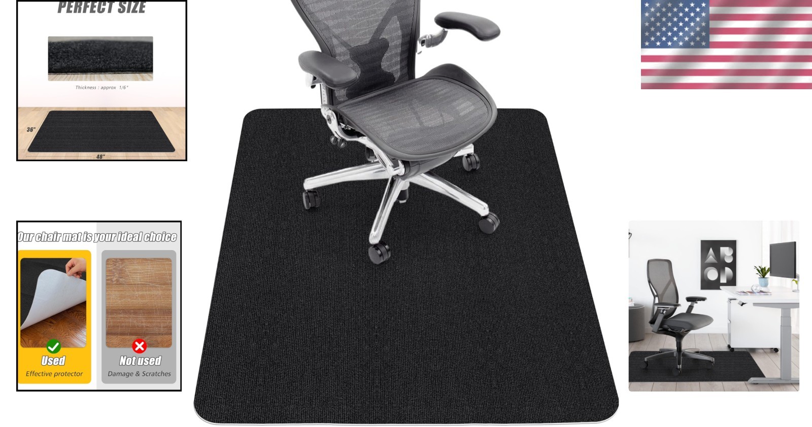 как выглядит Large 48x36 Anti-Slip Office Chair Mat for Hardwood Tile Floors - Pure Black фото
