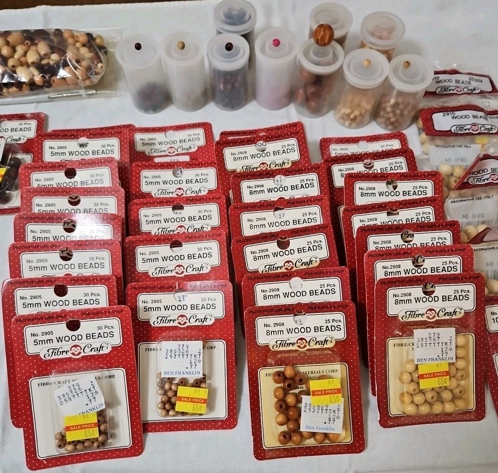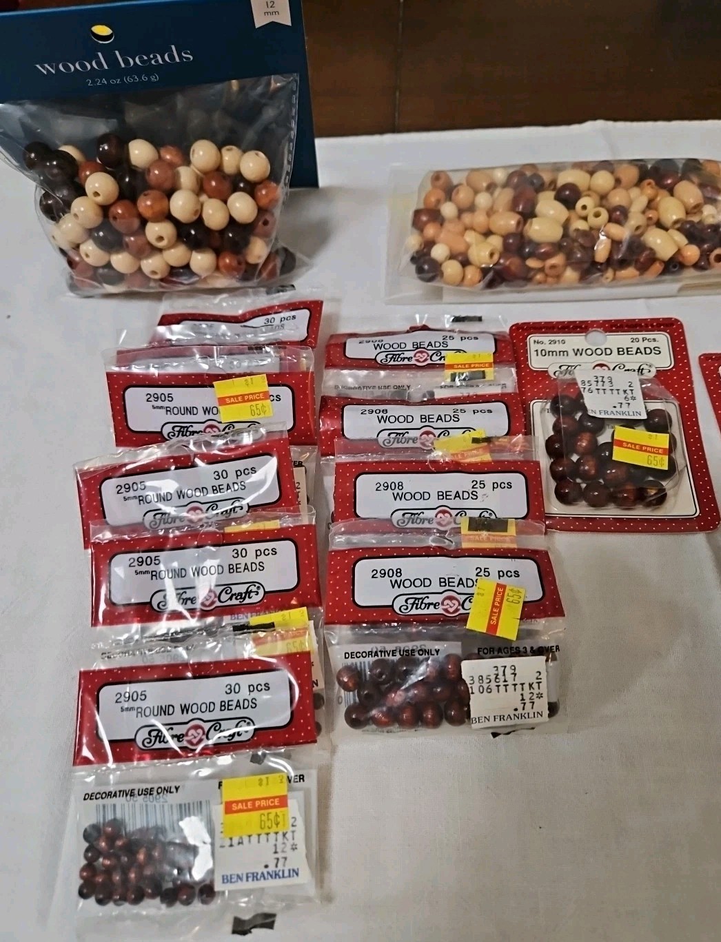 Large Lot Of Wood Beads, Various Sizes, Colors, Shapes