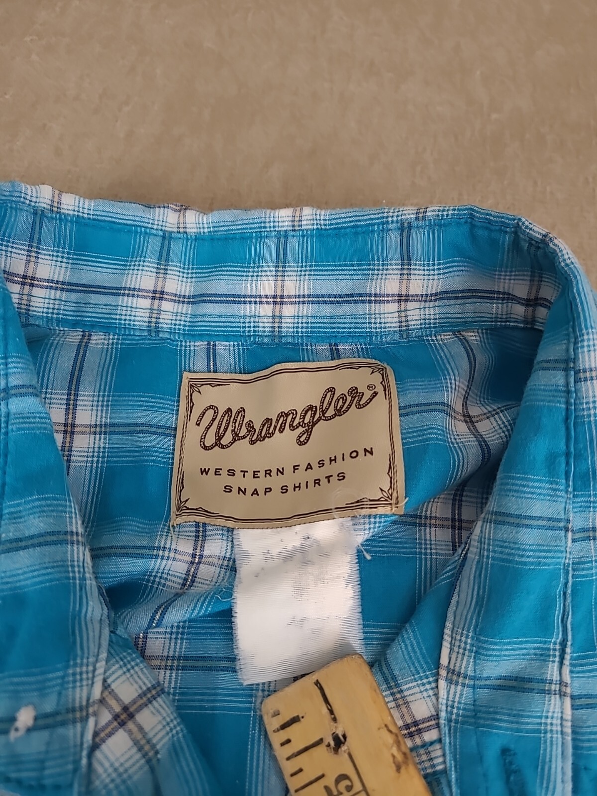 как выглядит Wrangler Mens XXL Western Pearl Snap Short Sleeve Shirt Blue Plaid фото