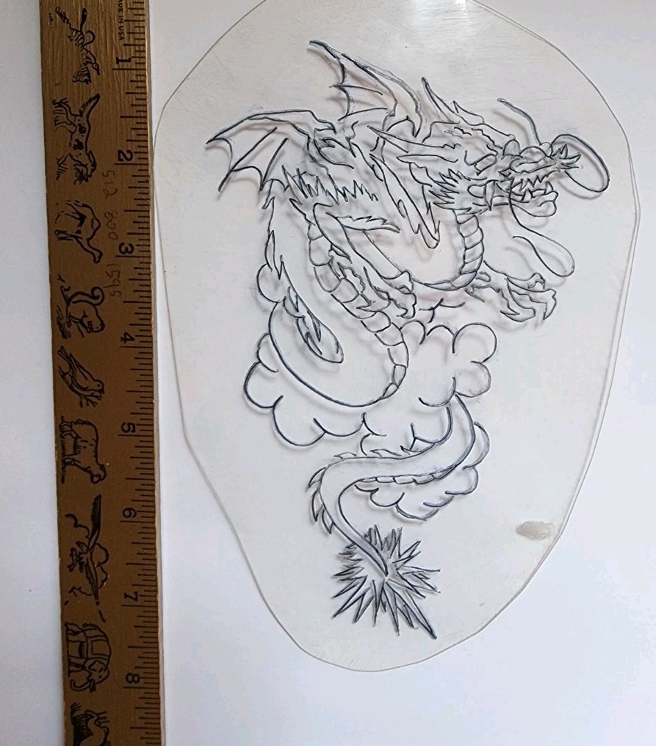 как выглядит original antique unknown shaw shop dragon tattoo acetate flash stencil 5x8 фото
