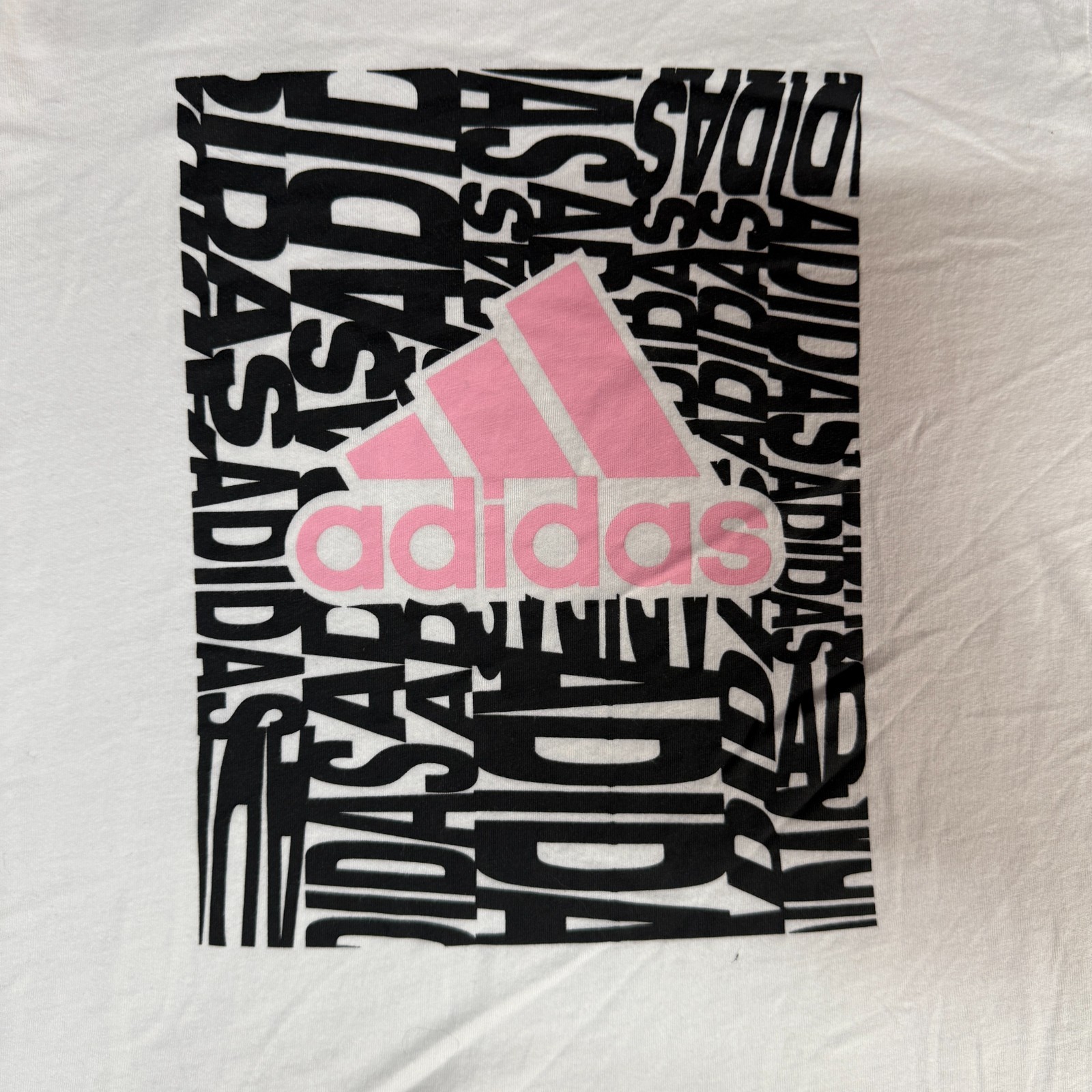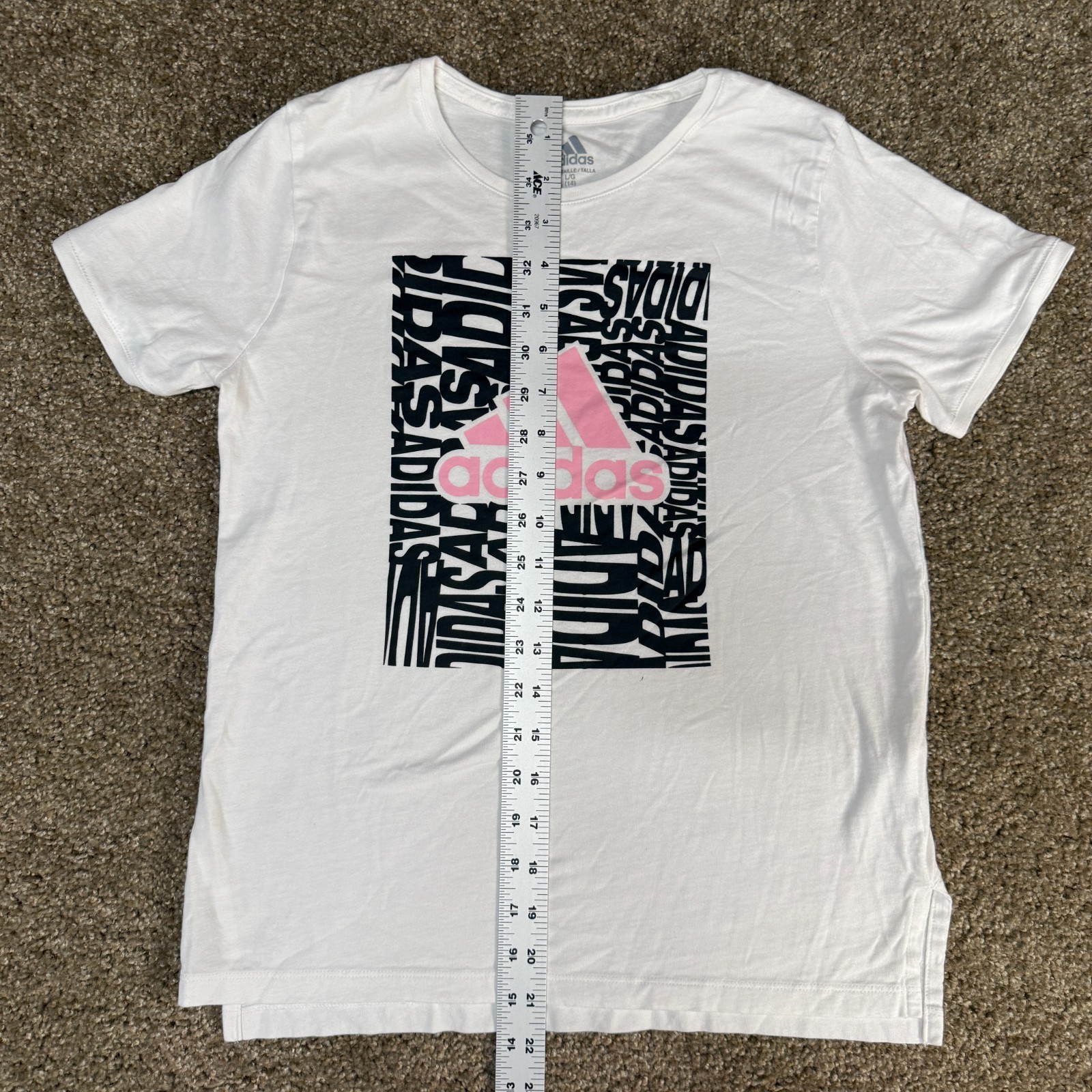 Adidas Tee Shirt Girls Large 14 White Graphic Cotton Athletic Pink logo Sports
