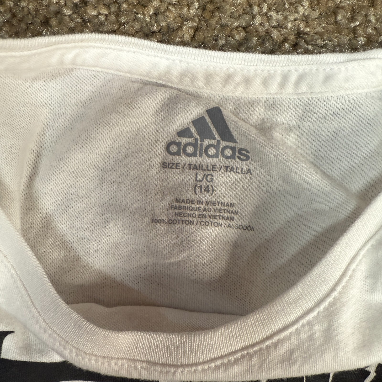 как выглядит Adidas Tee Shirt Girls Large 14 White Graphic Cotton Athletic Pink logo Sports фото