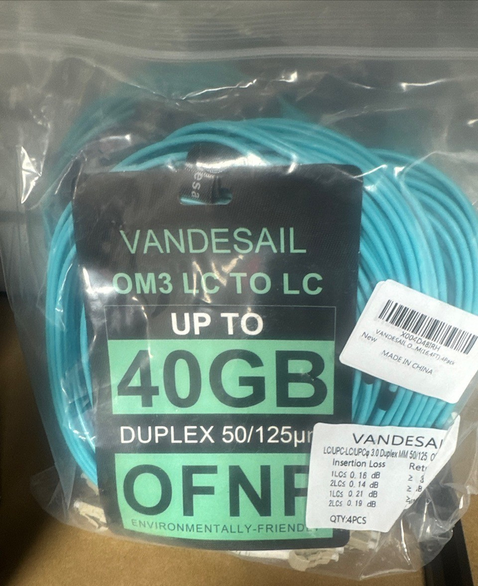 16.4FT 4Pack OM3 LC to LC Fiber Patch Cable Multimode OFNP Fiber 50/125 m