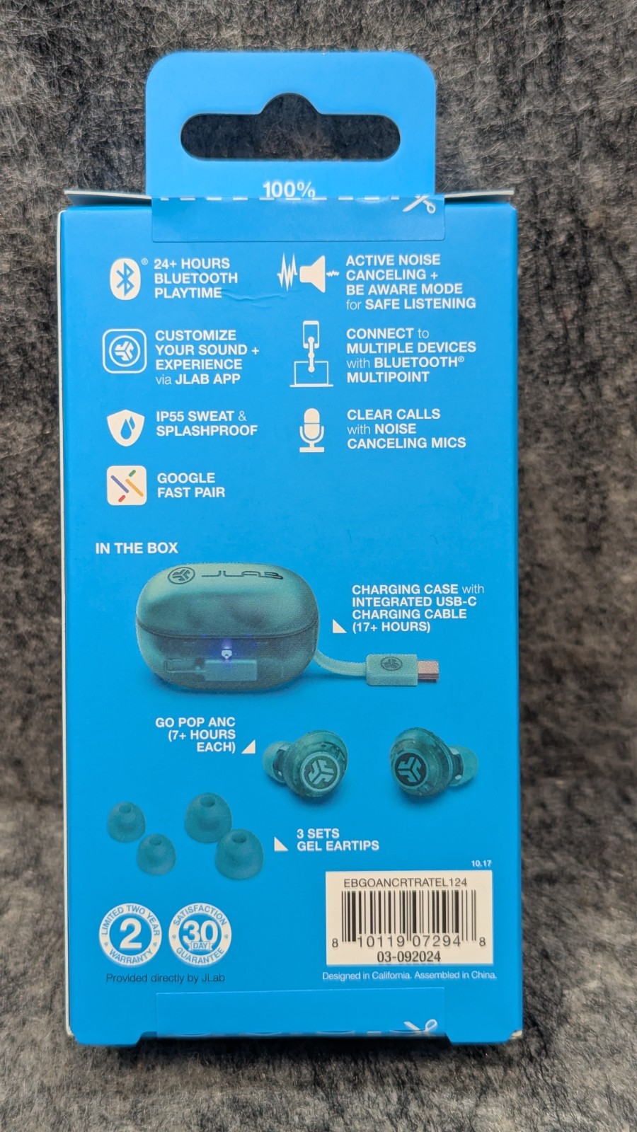 JLab Go Pop ANC True Wireless Bluetooth Earbuds - Transparent/Clear Teal New