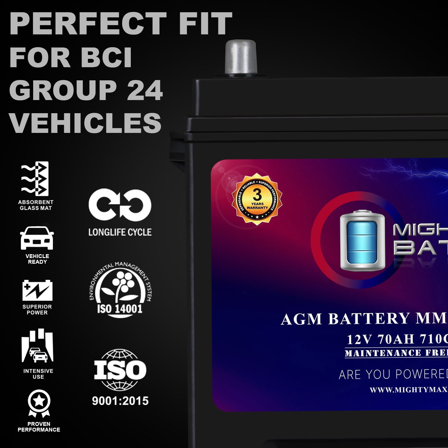 Mighty Max Battery MM-G24 BCI Group 24 12V 70 AH, 120RC 710 CCA AGM Car battery
