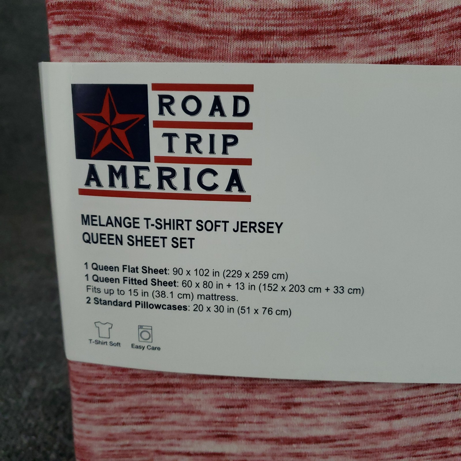 Road Trip America Jersey Knit Queen Sheet Set Red Malange 4 Pieces Cotton