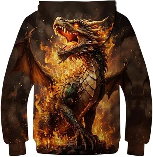 как выглядит Flaming Beast Dragon Hoodie Gothic Fantasy Pullover Sweatshirt Unisex фото