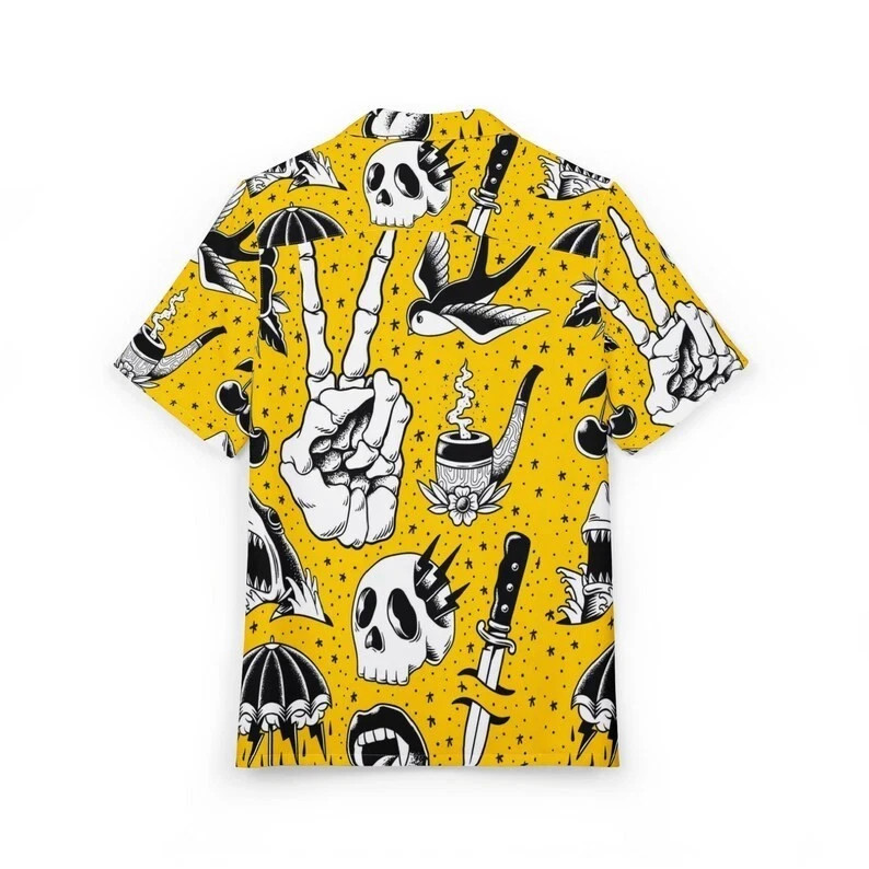 Yellow Skull Hawaiian Shirt Gothic Tattoo Punk Rock Horror Aloha Top