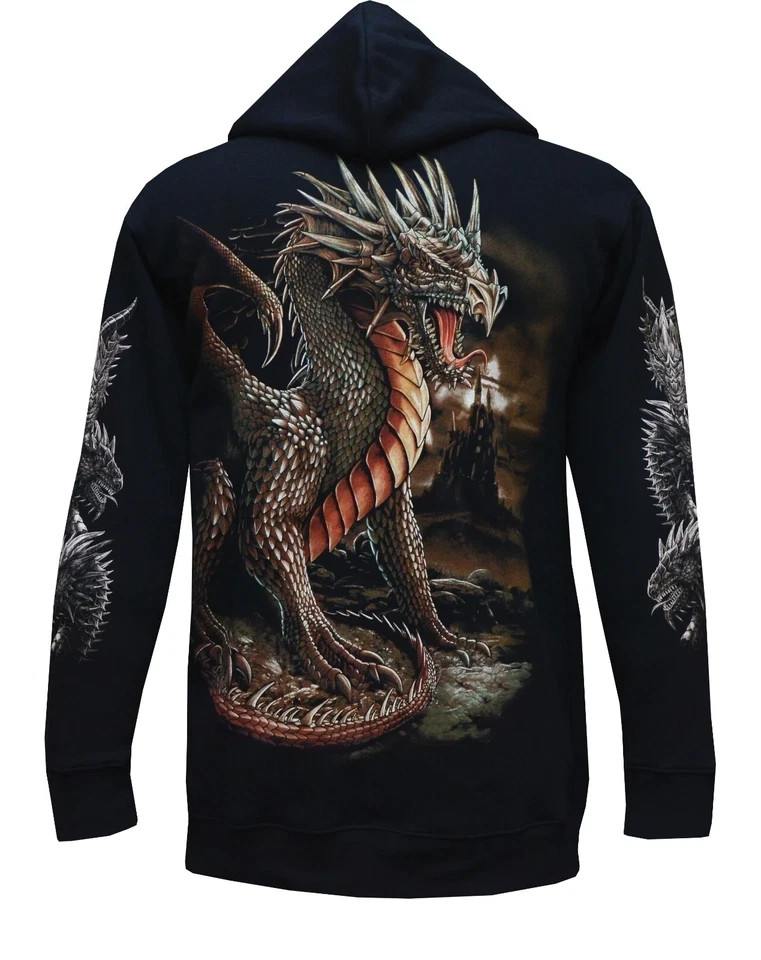 Fire Dragon Zip Hoodie Black Gothic 3D Printed Fantasy Graphic Sizes S-5XL