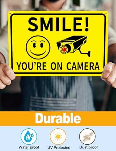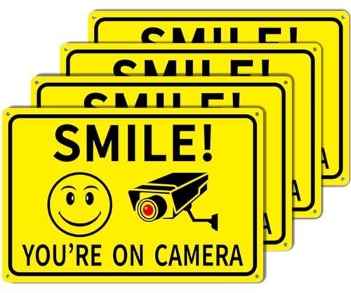 4-Pack Smile You're On Camera Signs 8x12 Rust Free Aluminum Video 4 Packs