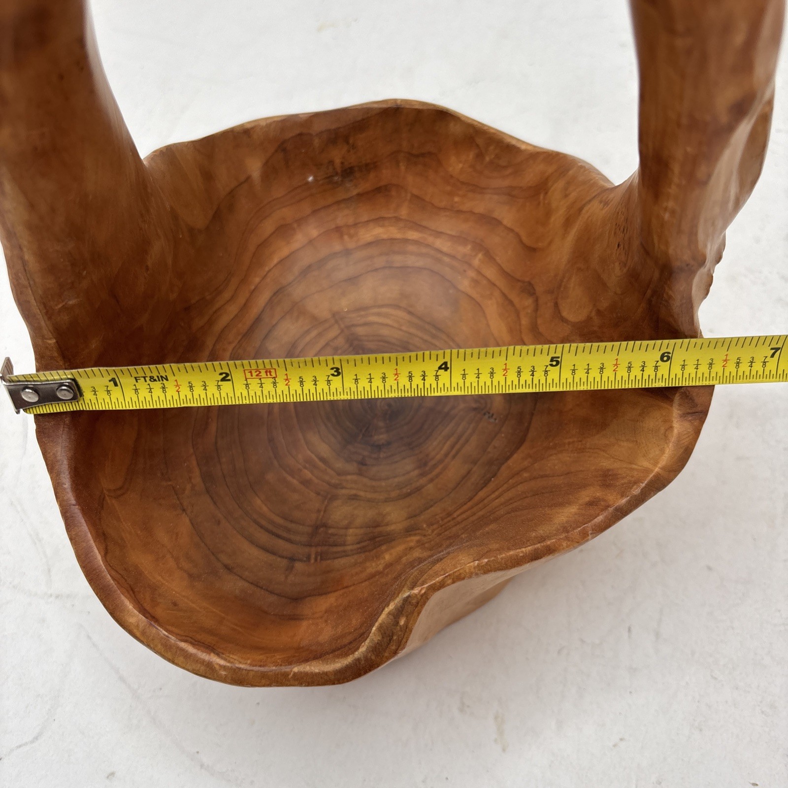Burl Wood Basket Hand Carved Knobby Handle Natural MCM JK