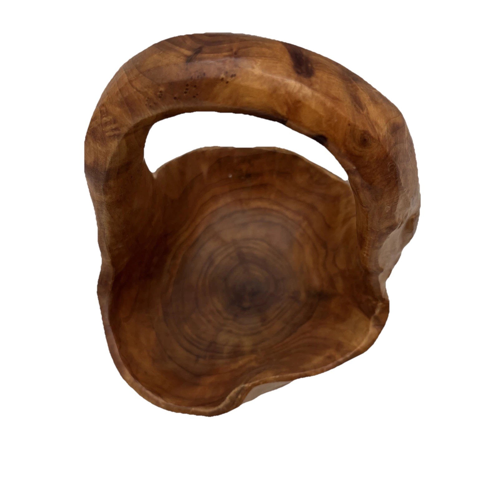 • Burl Wood Basket Hand Carved Knobby Handle Natural MCM JK
