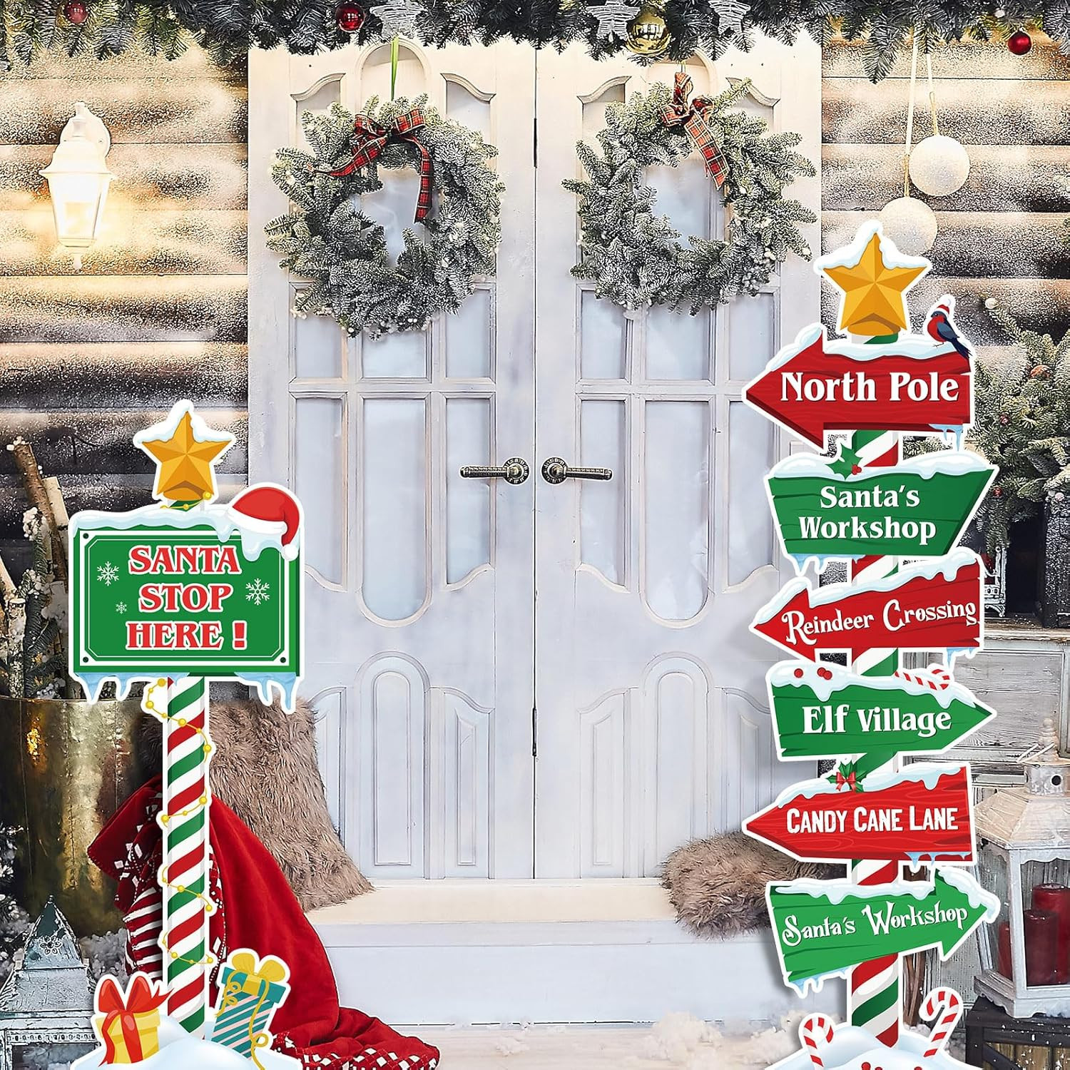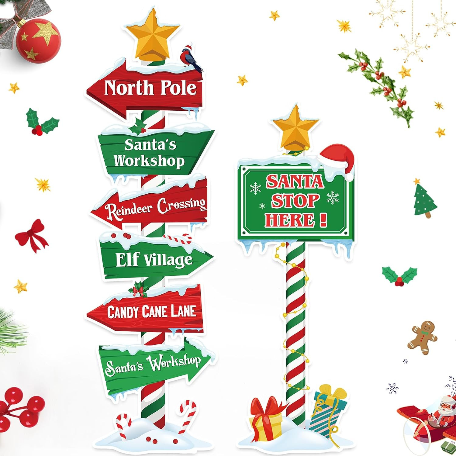 7 Pcs Christmas North Pole Yard Signs Christmas Party Welcome Sign Stakes Xmas S
