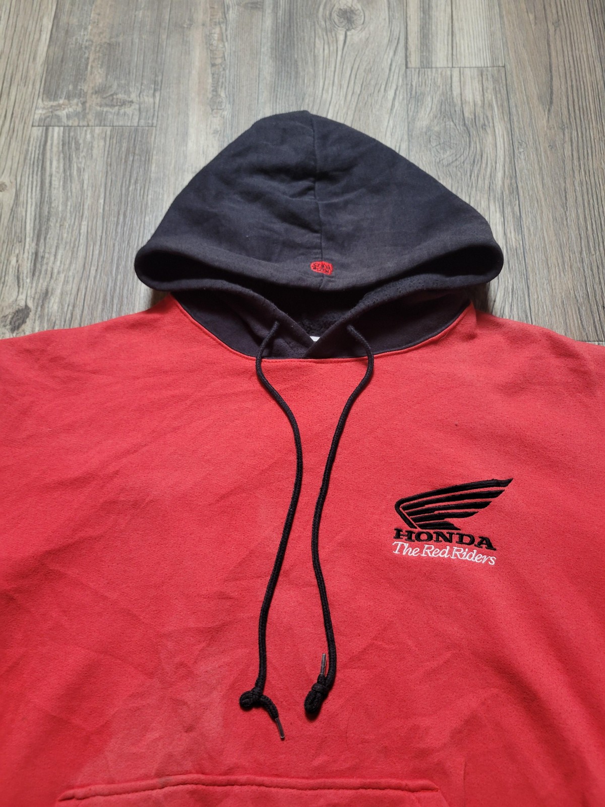 как выглядит Honda Racing Hoodie Sweatshirt Mens Red Black Pullover The Red Riders Ride Red фото