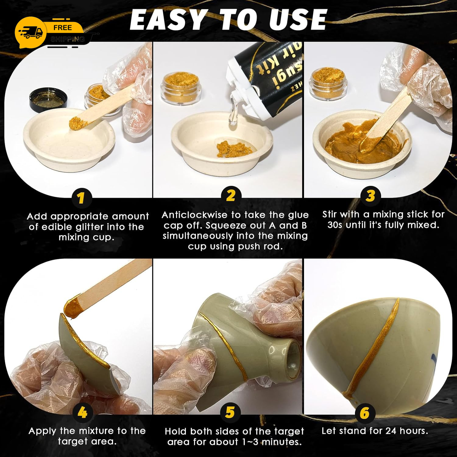 Kintsugi Repair Kit, Food Safe Gold Silver Kintsugi Kit for Broken Ceramics, G