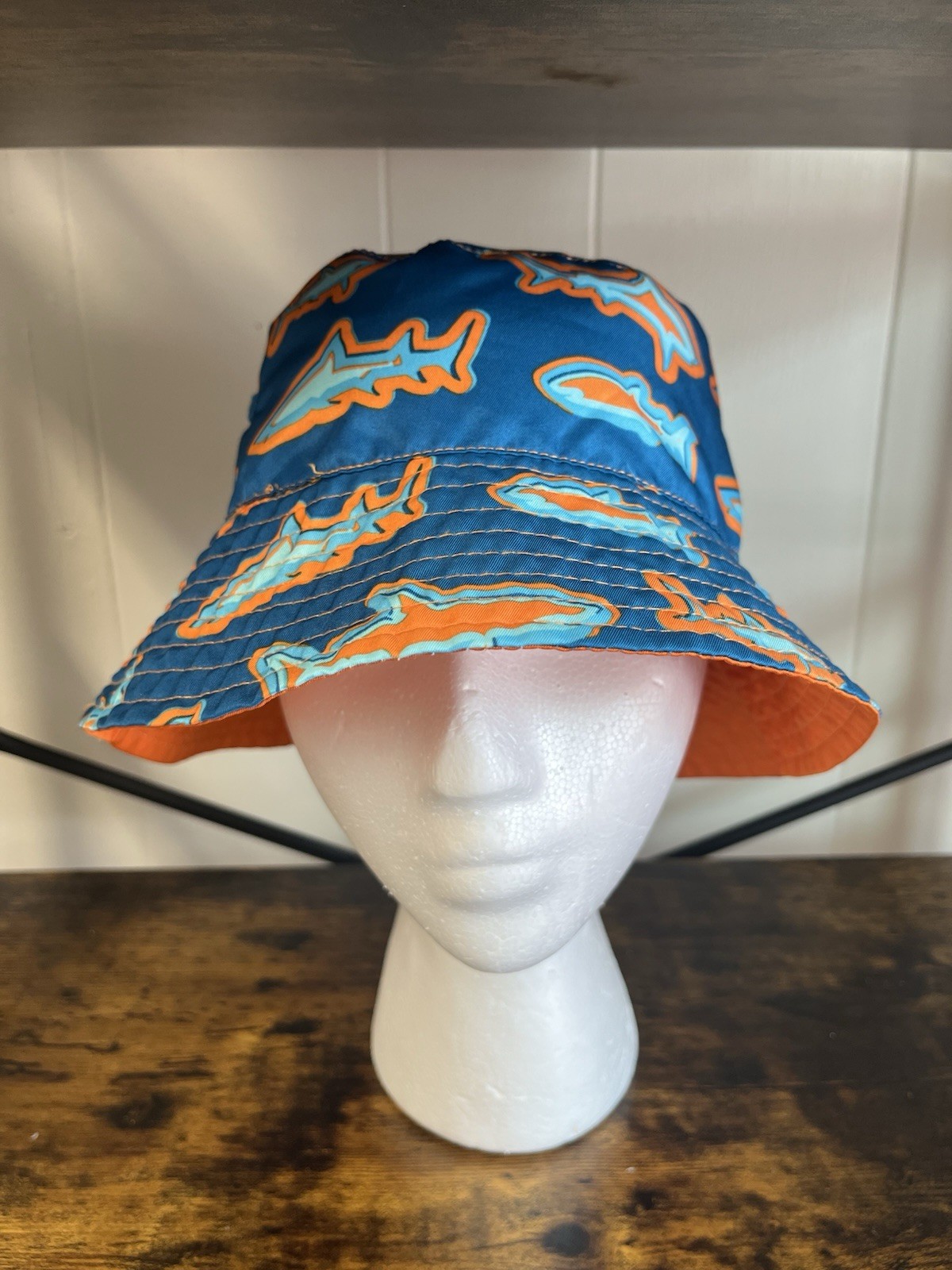 UV Skinz Orange Sharks Reversible Toddler Bucket Hat UPF 50 Teal Blue