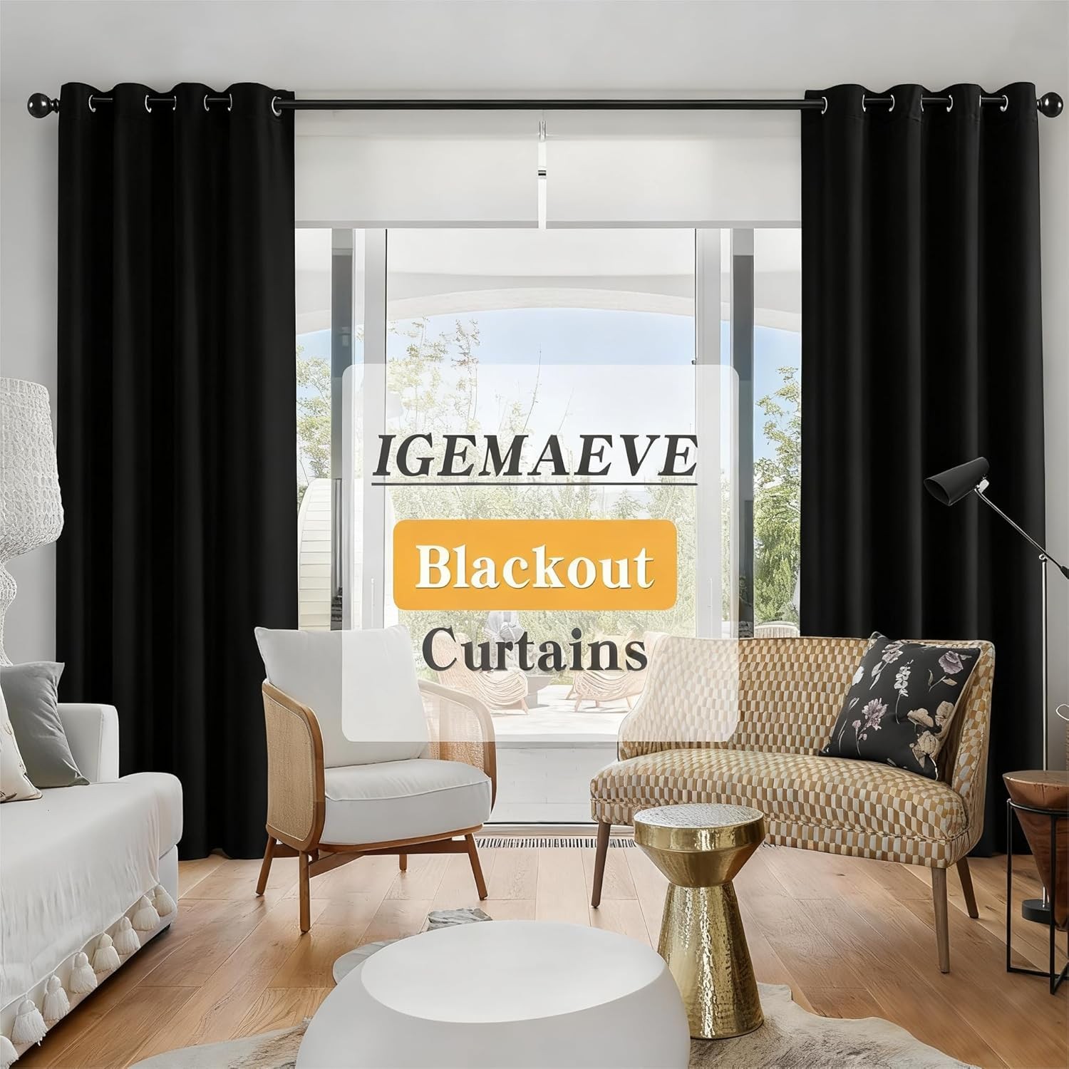 как выглядит Black Out Curtains 84 Inch Long 52W x 84L Pack of 2 , Total Blackout фото