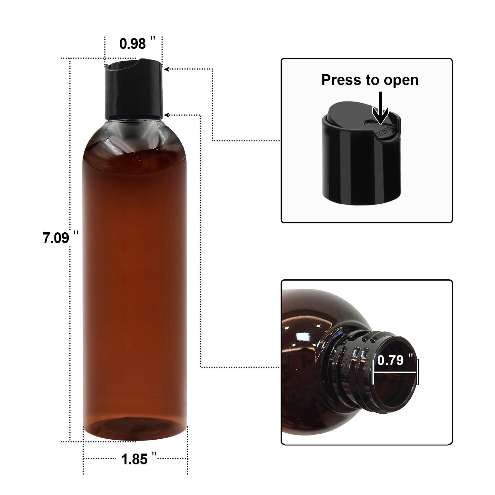 2 Pack 8 oz Amber Plastic Squeeze Bottles with Black Disc Caps Refillable Emp...