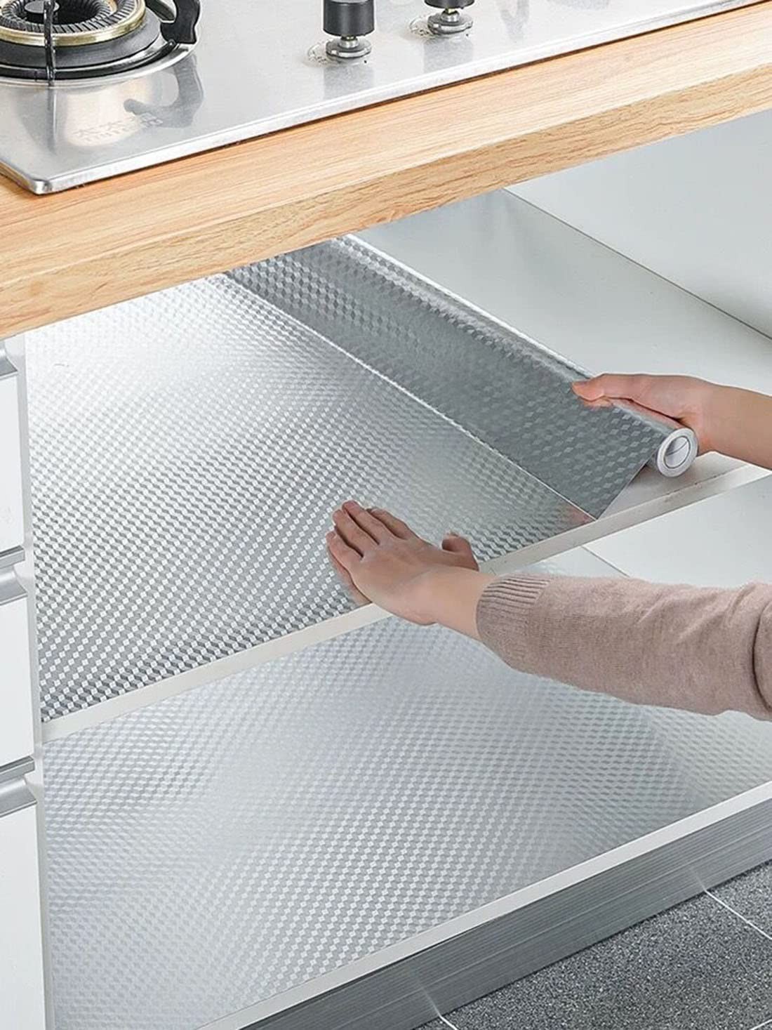 как выглядит Self Adhesive Kitchen Backsplash Stickers Peel and Stick Drawer Shelf Liner фото