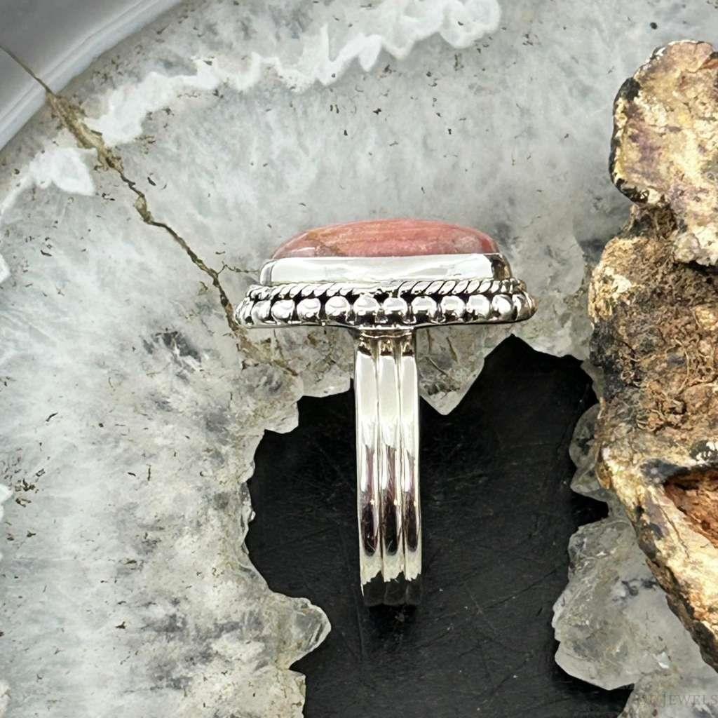 Sterling Silver Southwestern Style Oval Rhodochrosite Ring Size 7 For Women
