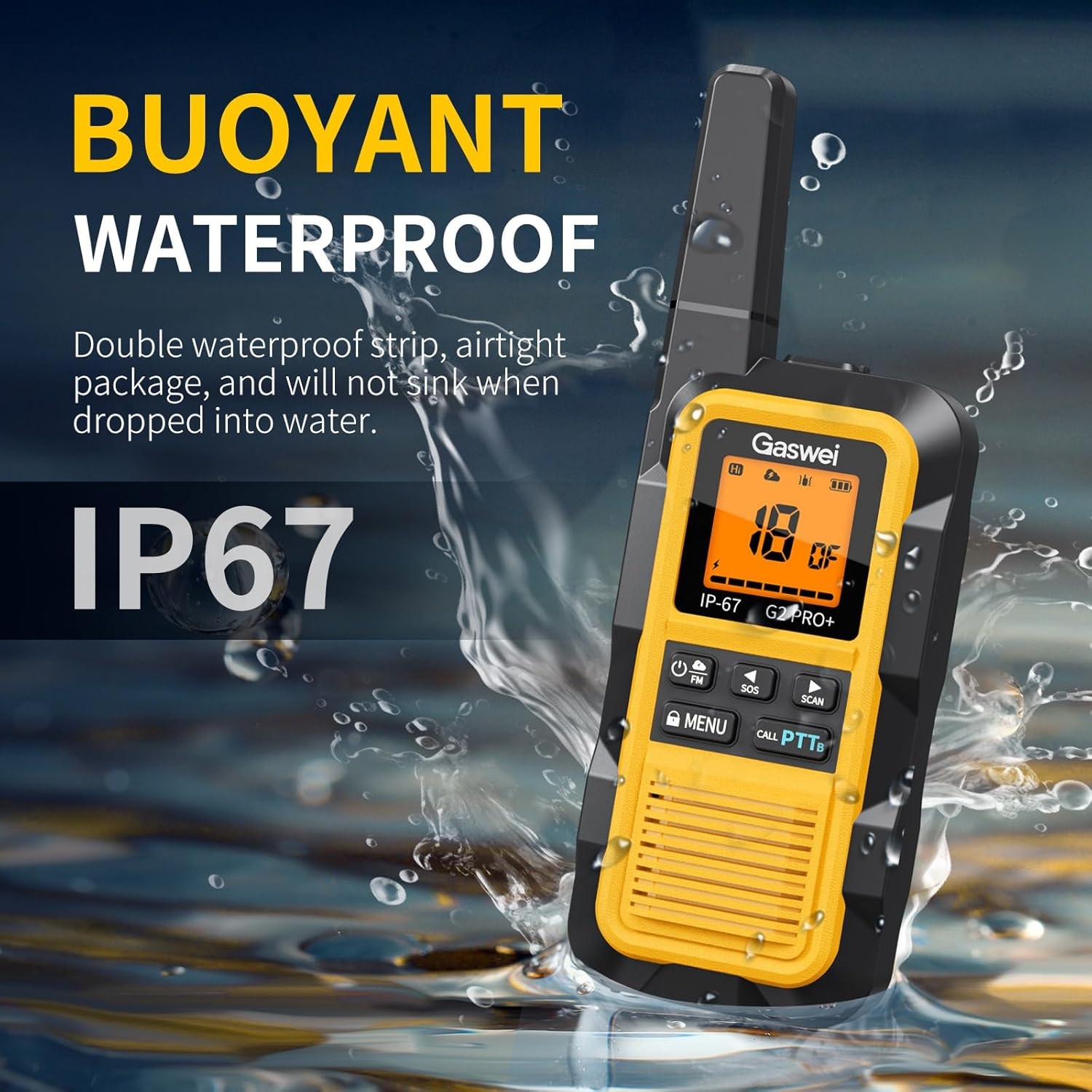 G2Pro Waterproof Floating Walkie Talkies - Long Range 2 Pack Yellow
