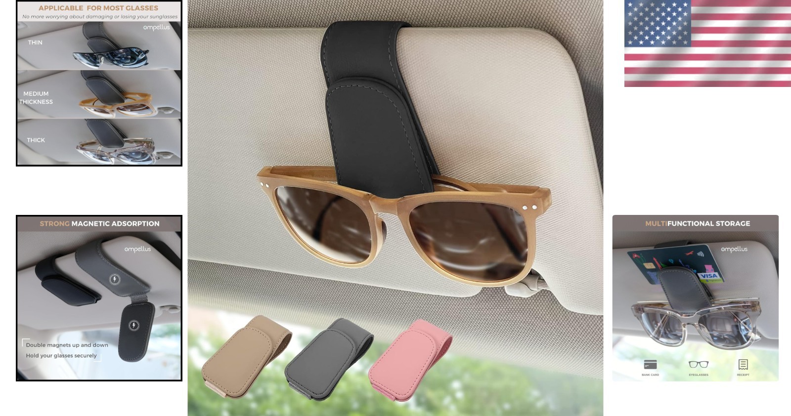 как выглядит Magnetic Leather Sunglass Holder for Car Visor - Elegant Eyewear Organizer фото