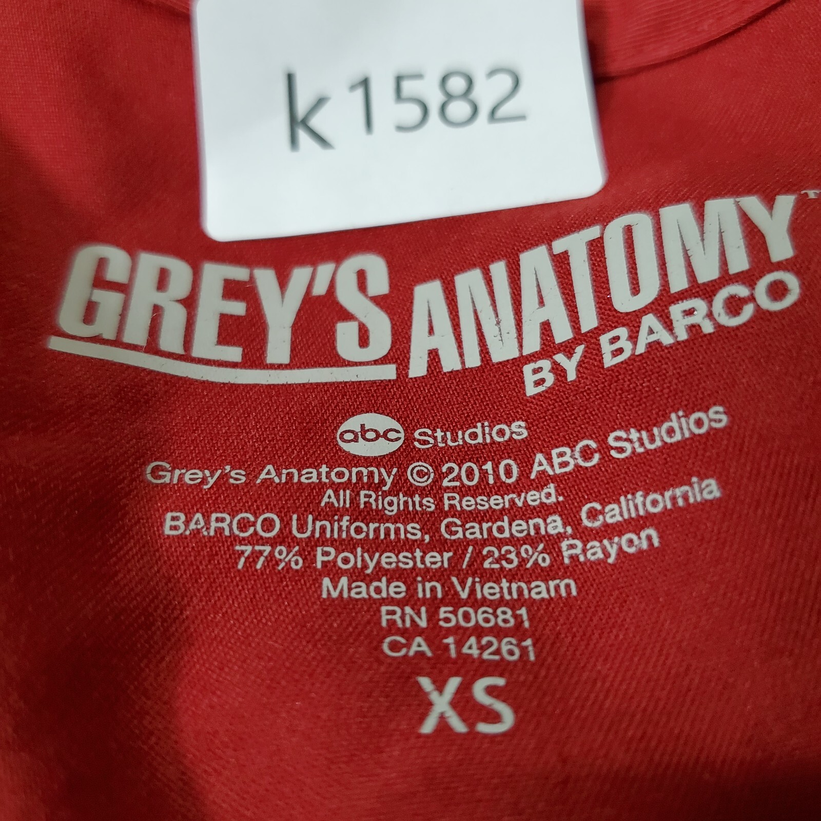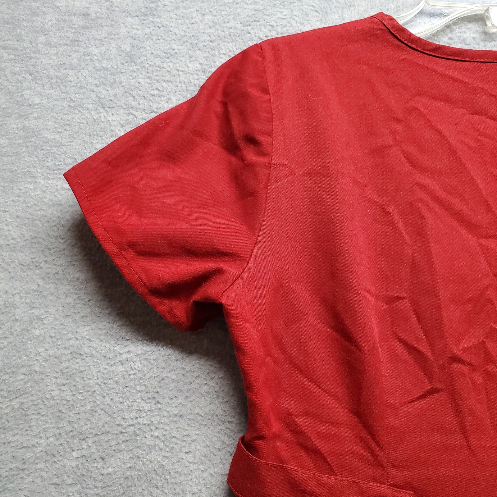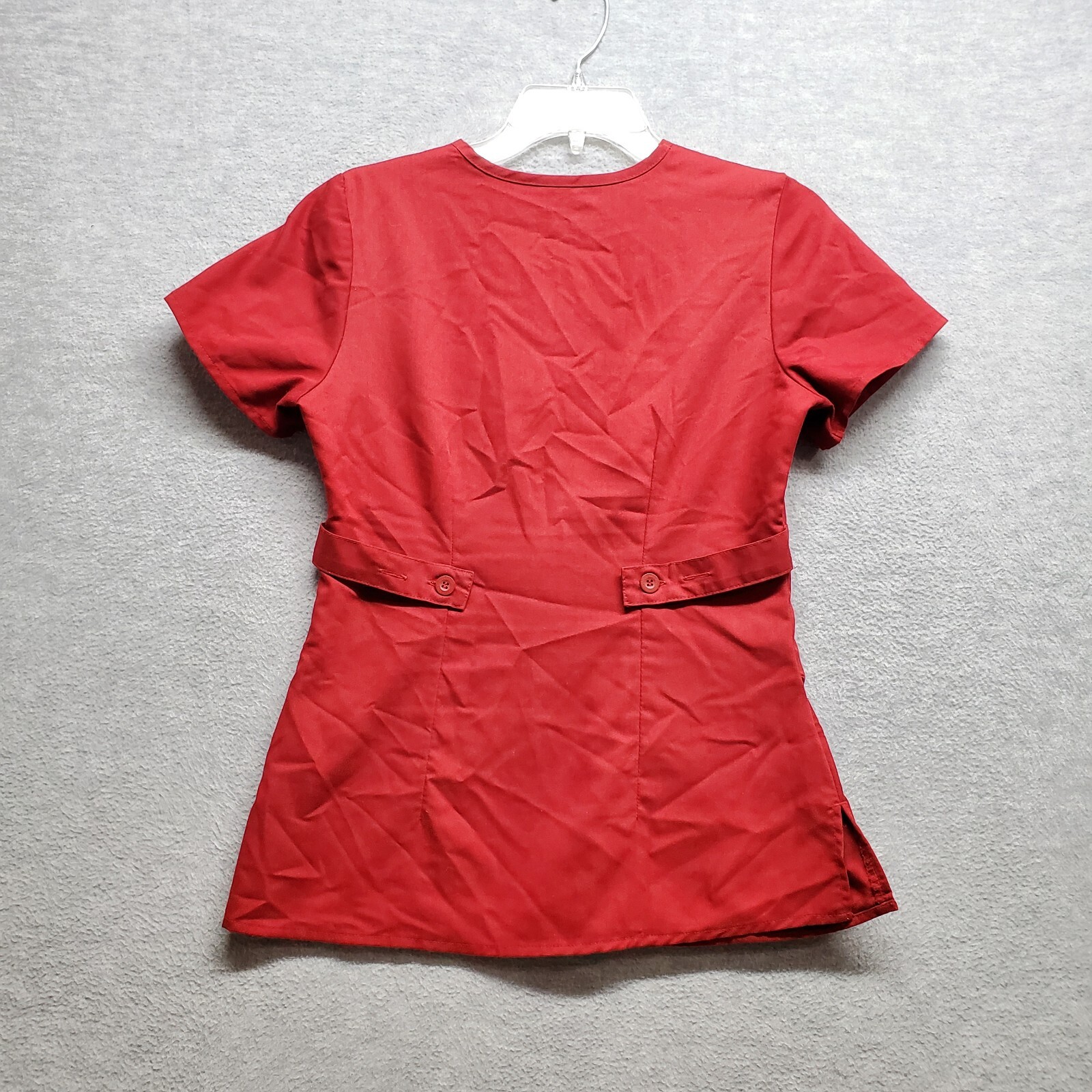 Grey's Anatomy Women Scrub Top XS Red Pockets Faux Wrap Short Sleeve V Neck