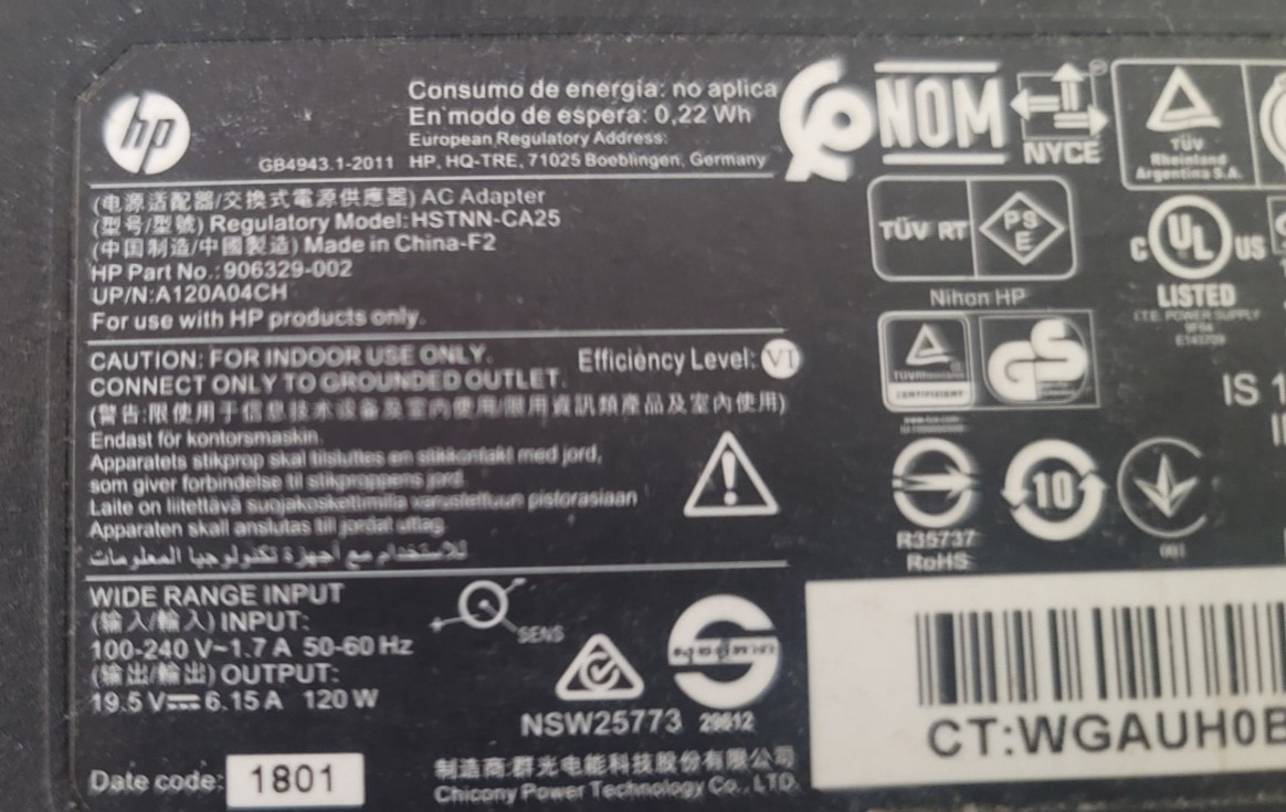 Genuine OEM 120W 19.5V AC Power Adapter for HP 732811-001 710415-001 HSTNN-LA25