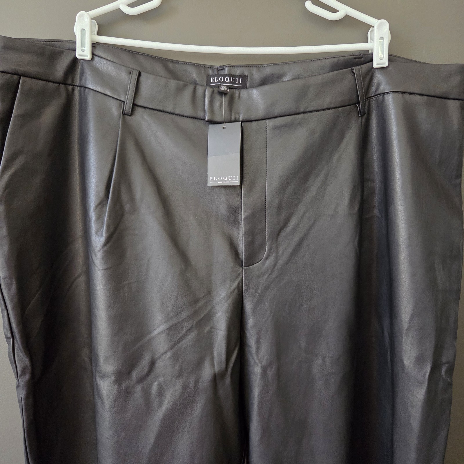 NWT Eloquii Women's 26 Plus Faux Leather Wide Leg Trouser Pants Black High Rise
