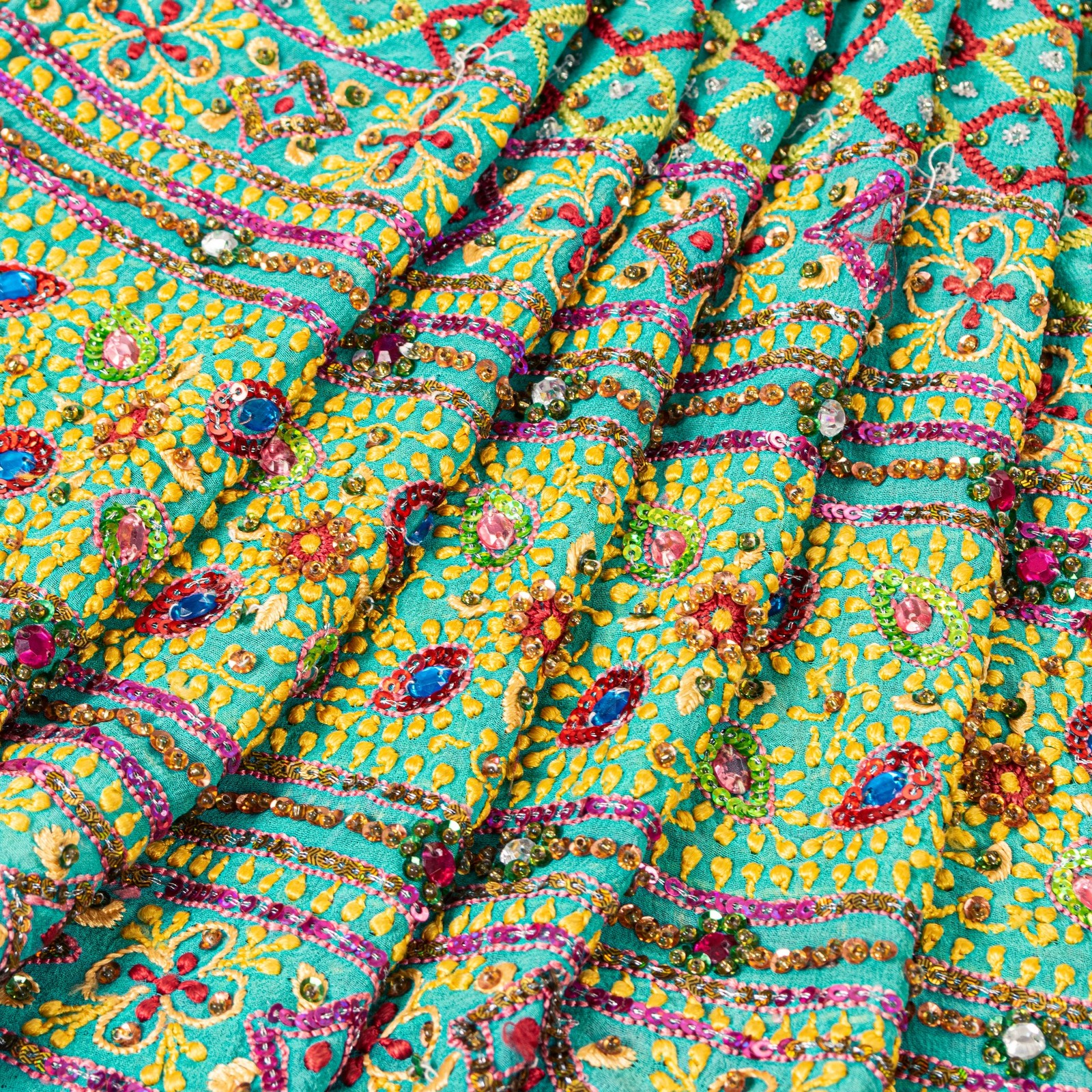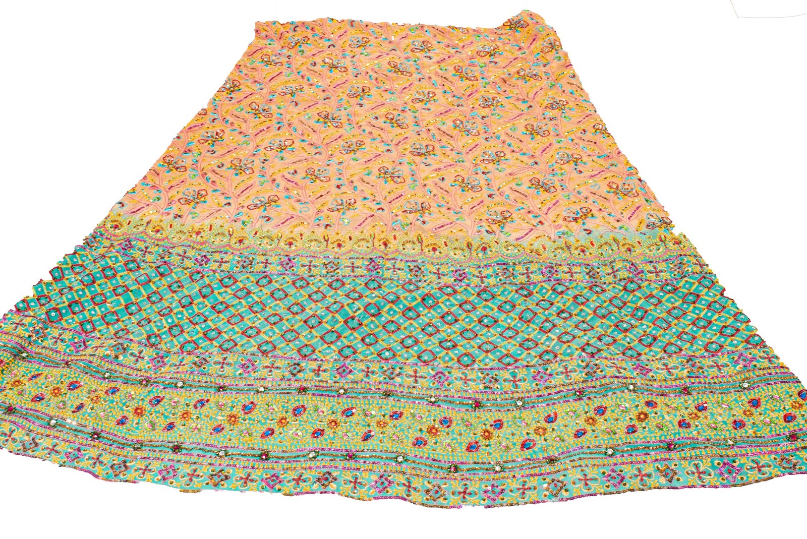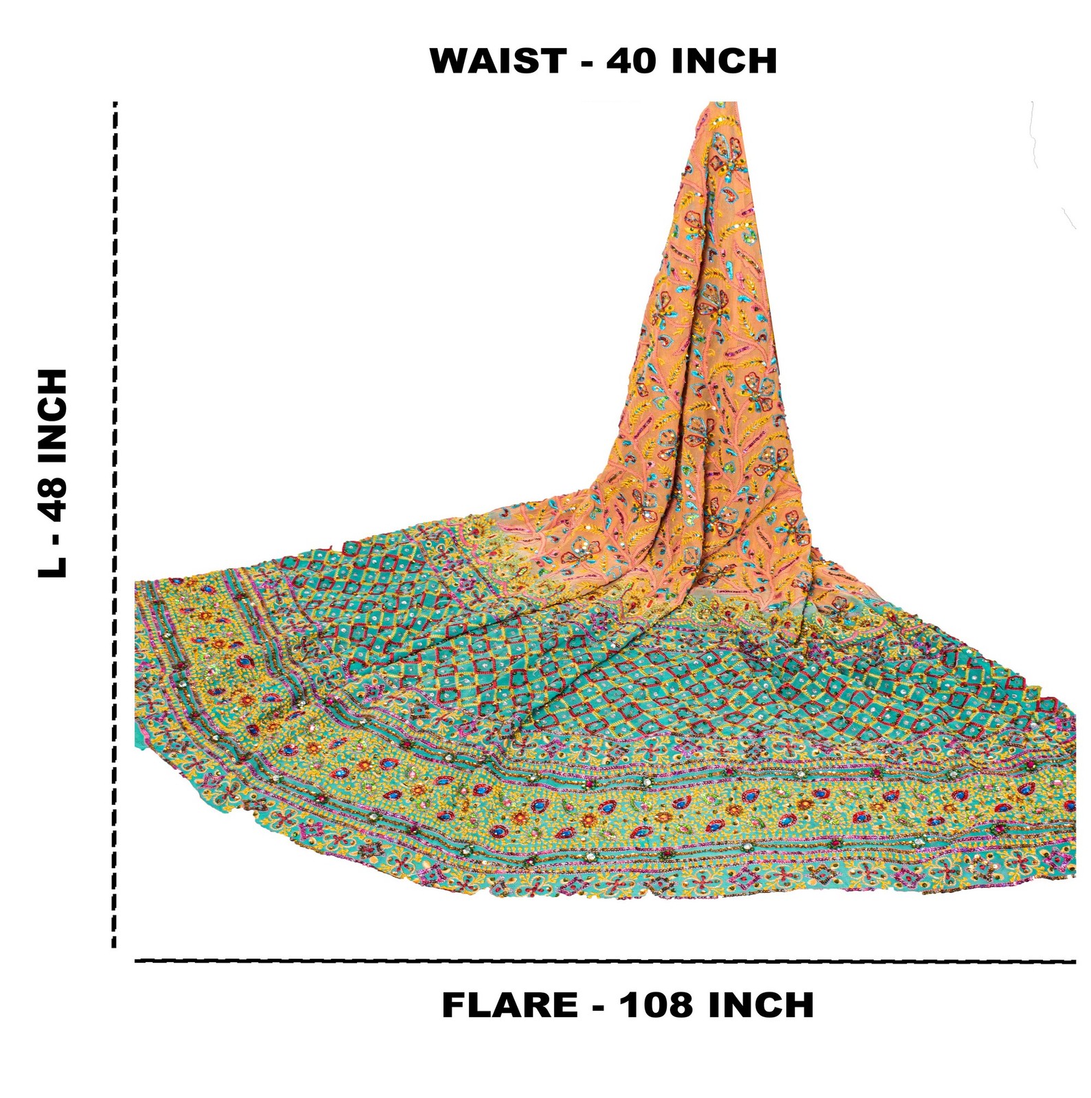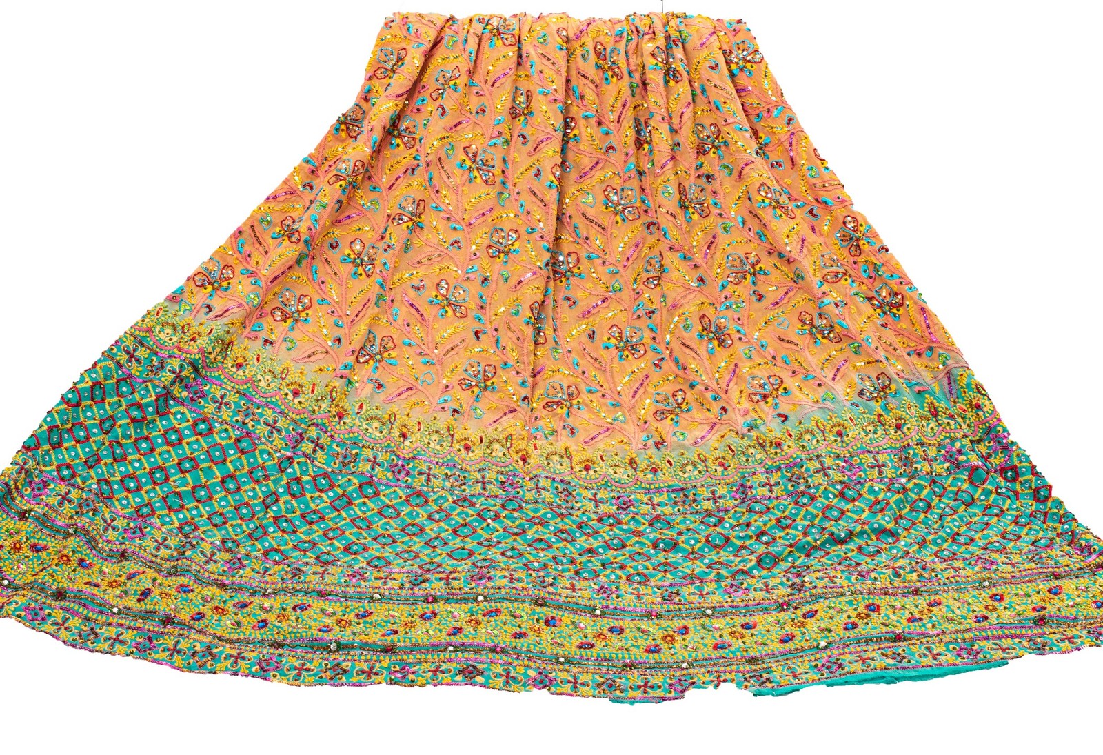 как выглядит Sanskriti Vintage Orange Long Lehenga Pure Georgette Silk Hand Beaded Unstitched фото