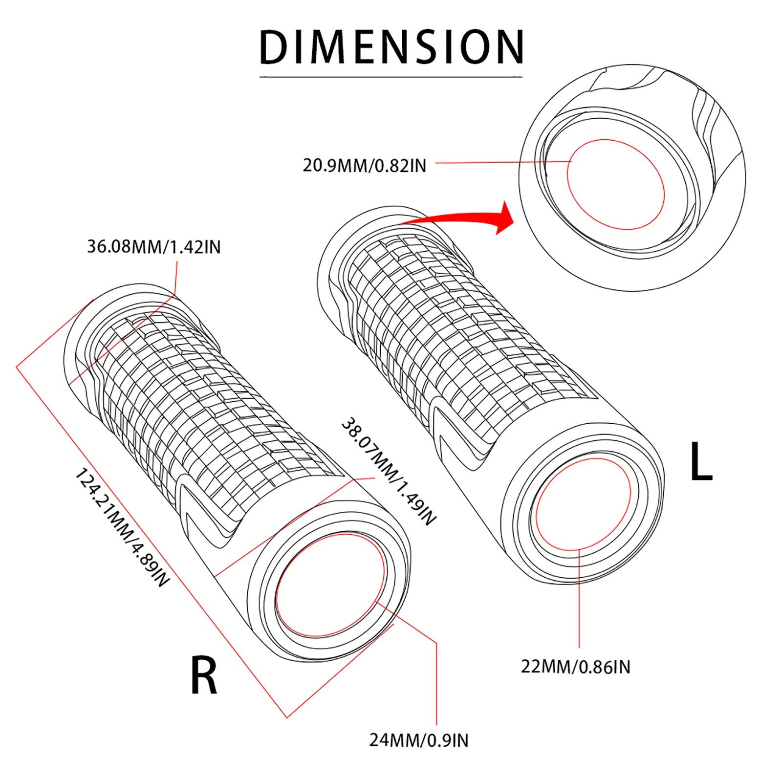 Размер: Left (0.86Inch) & Right(0.9Inch) Grips