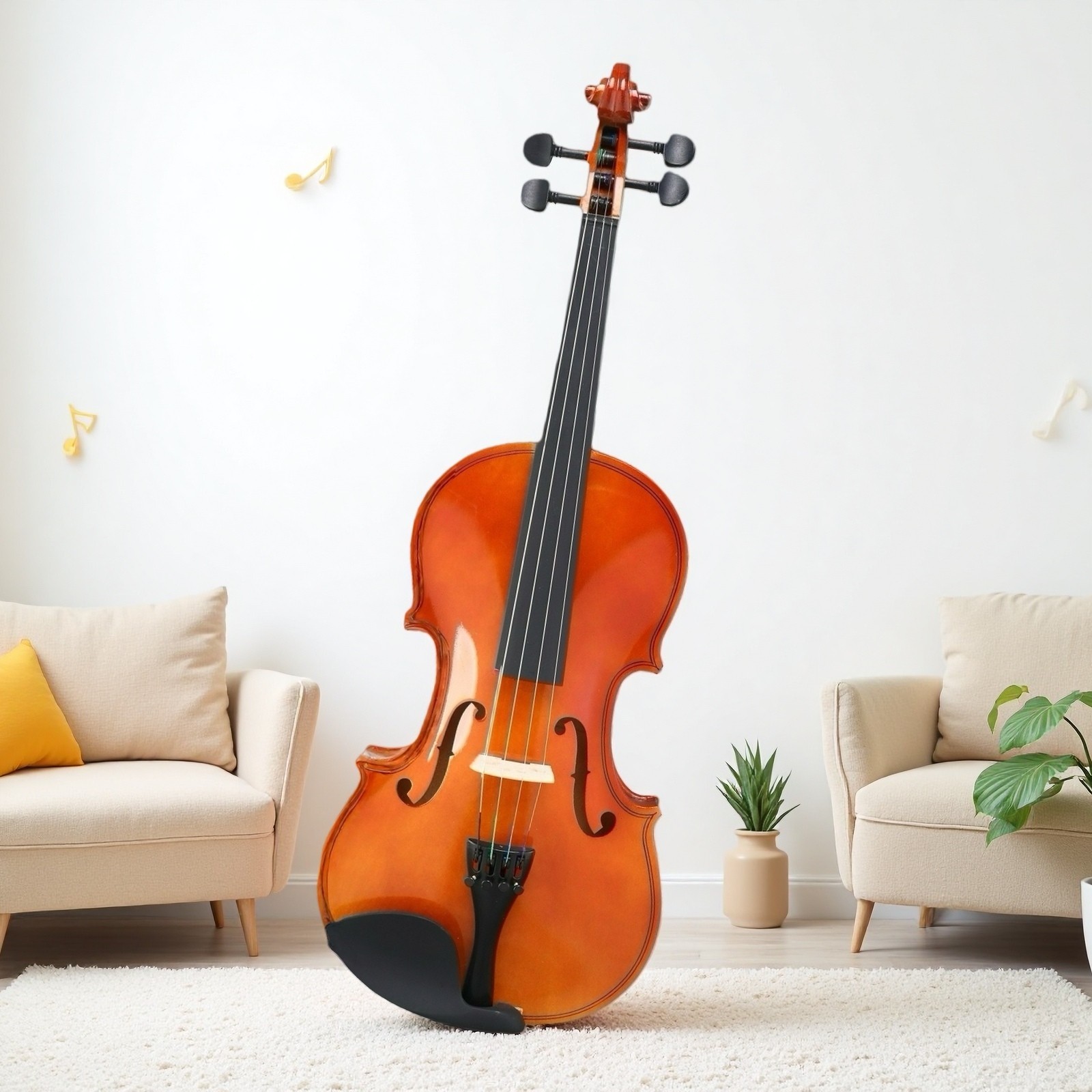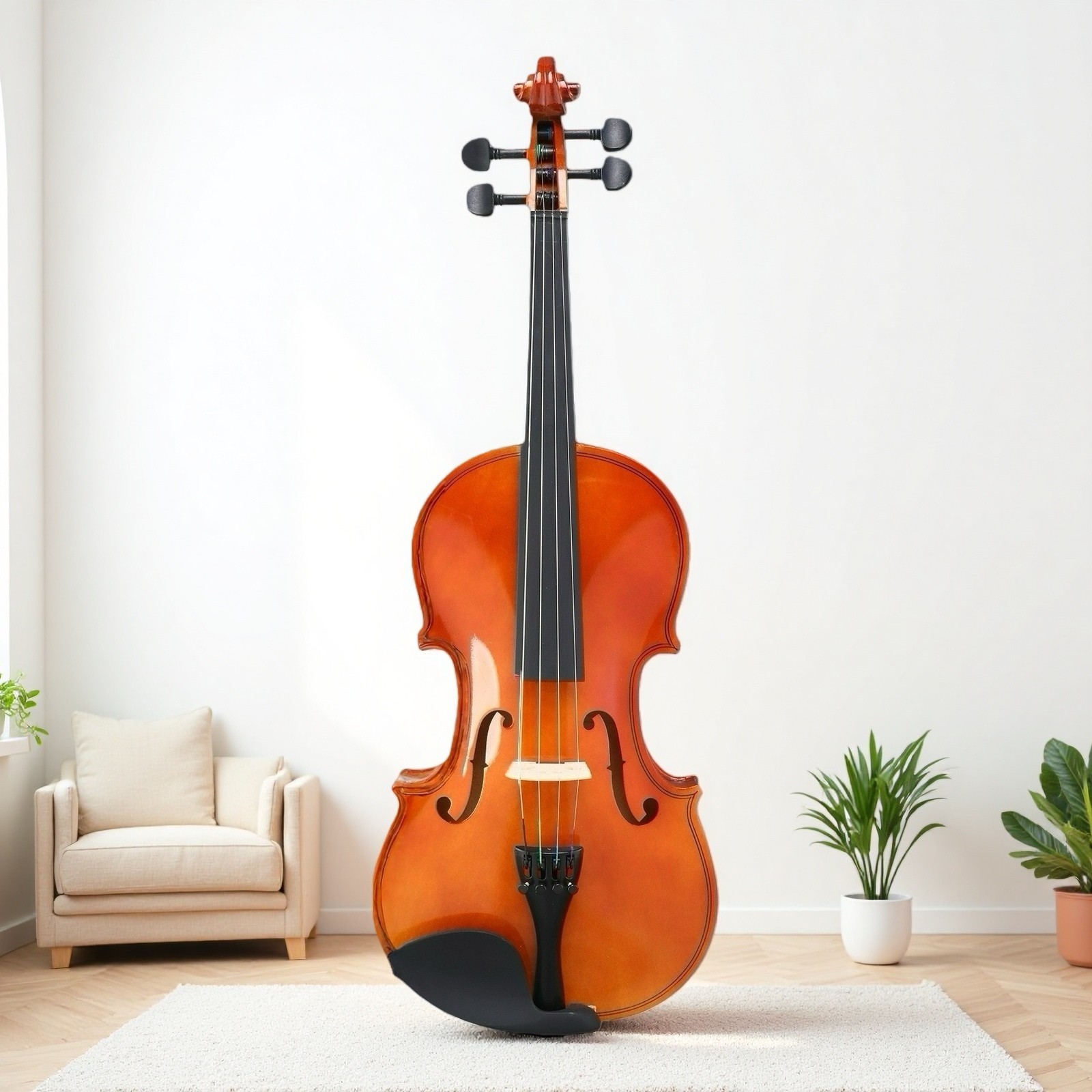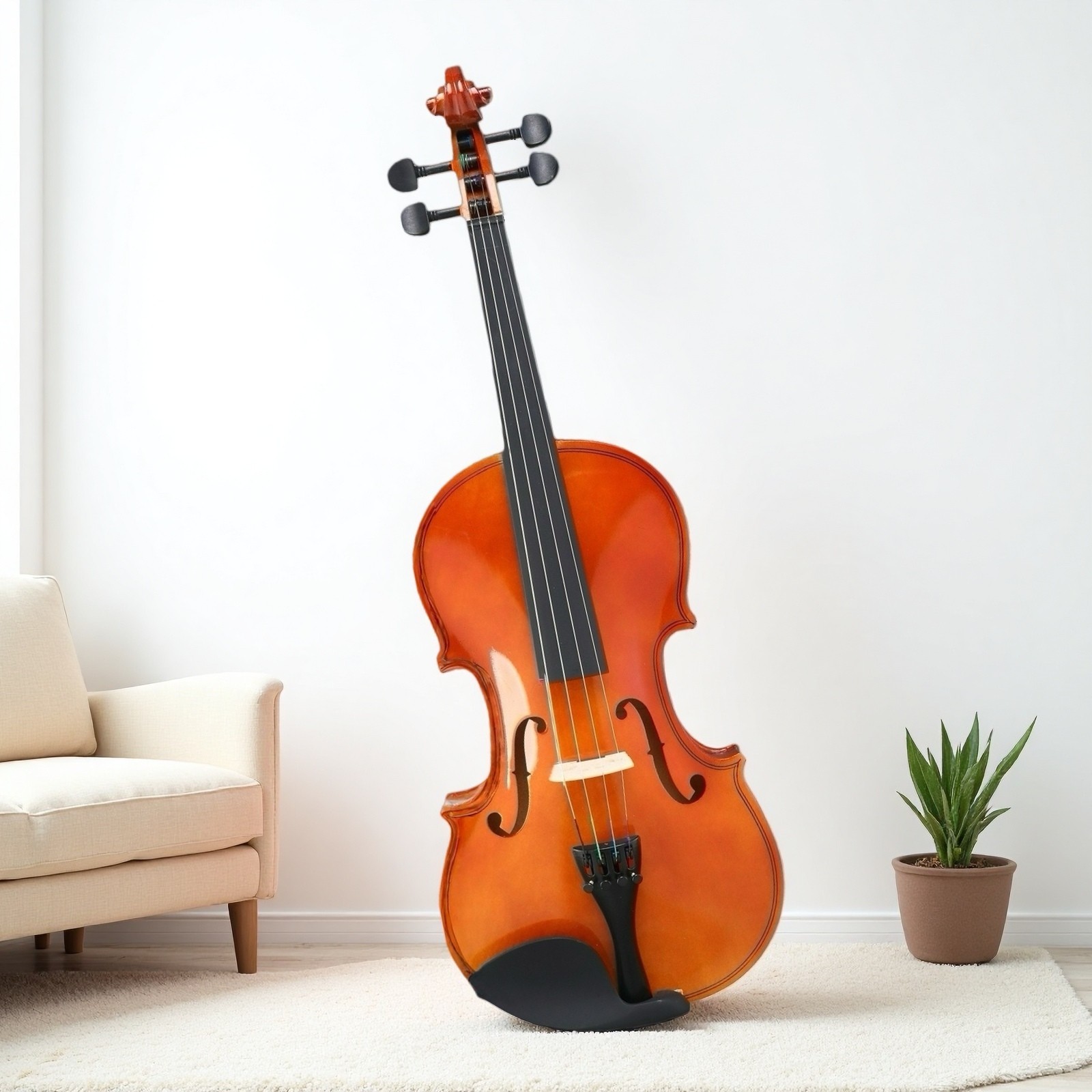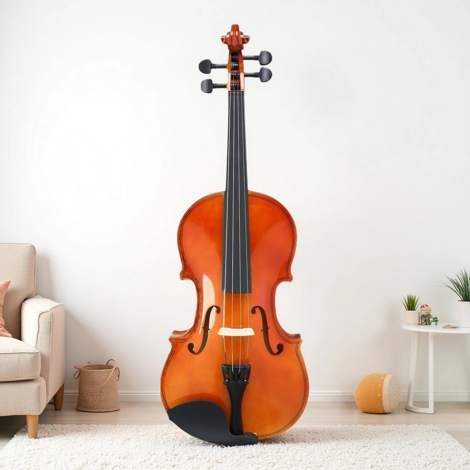 4/4 Full Size Beginner Acoustic Violin Set - Shoulder Rest Strings Set Natural
