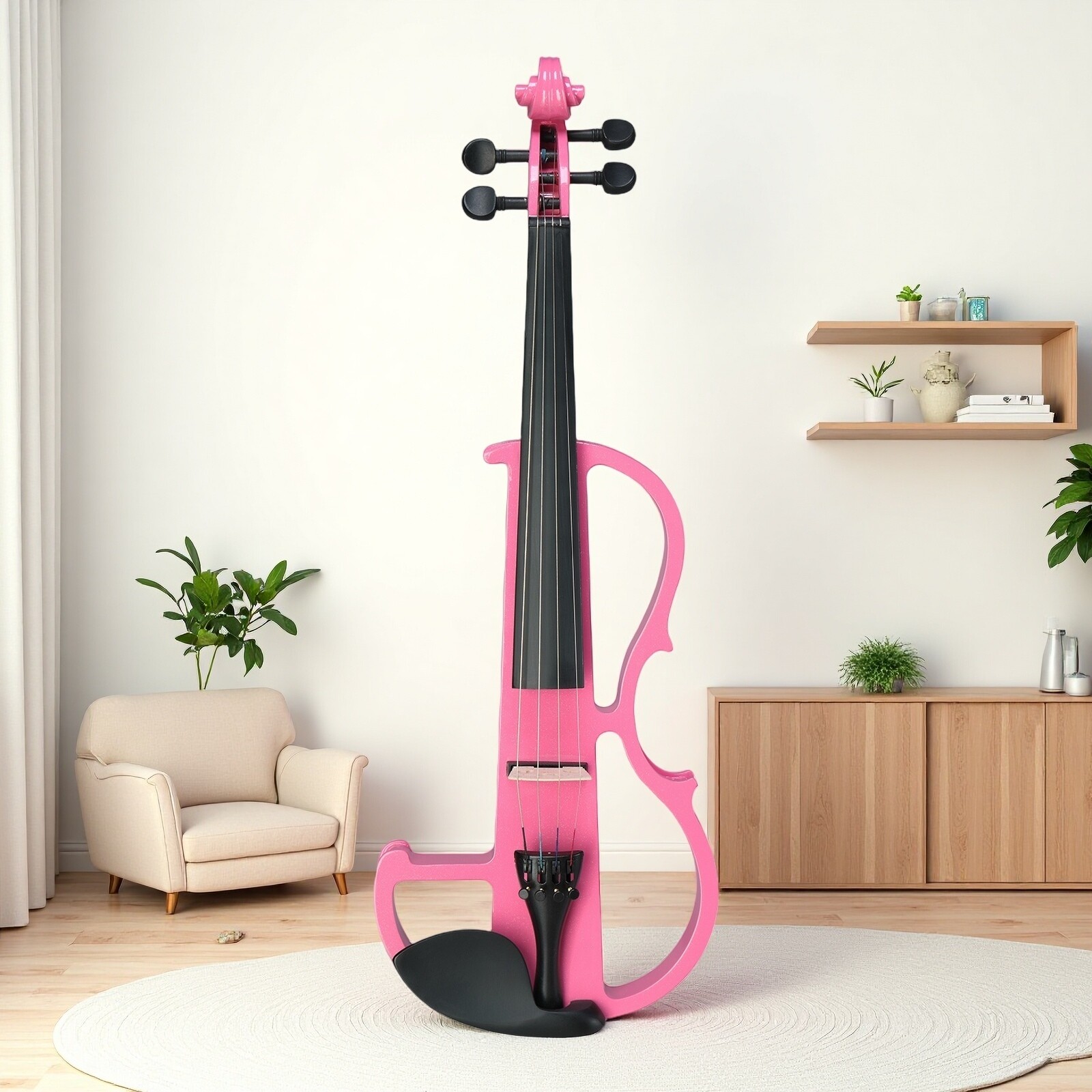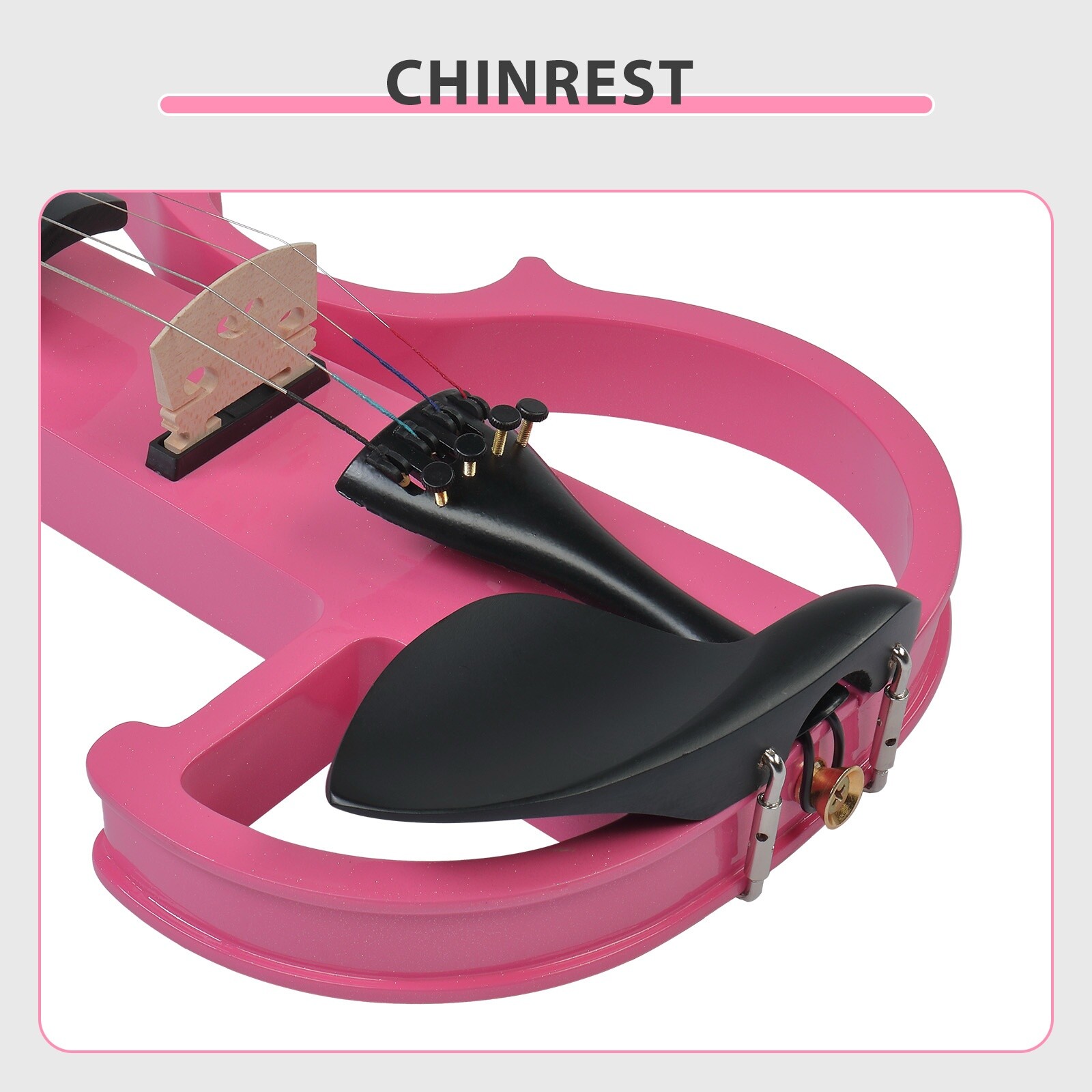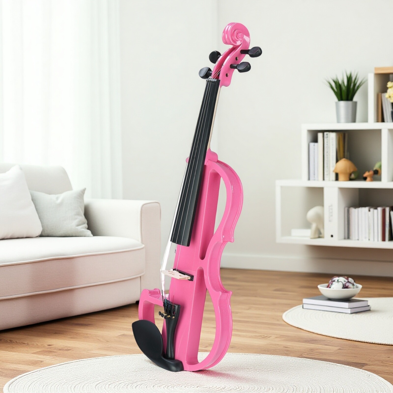 4/4 Full Size Beginner Silent Electric Violin Set - Pink Headphones Case Bow