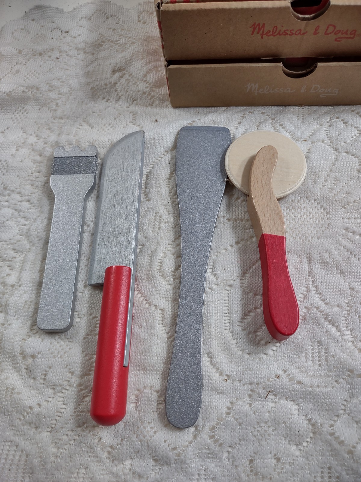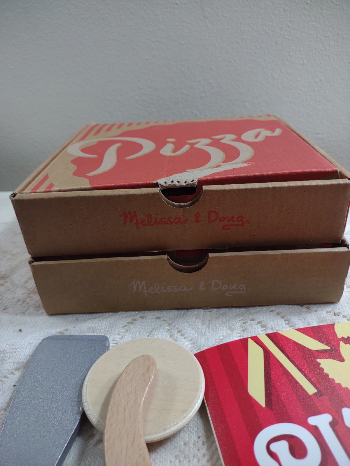 Melissa Doug Wooden Felt Pizza Party Playset And Utensils 2 Pizzas W/Boxes