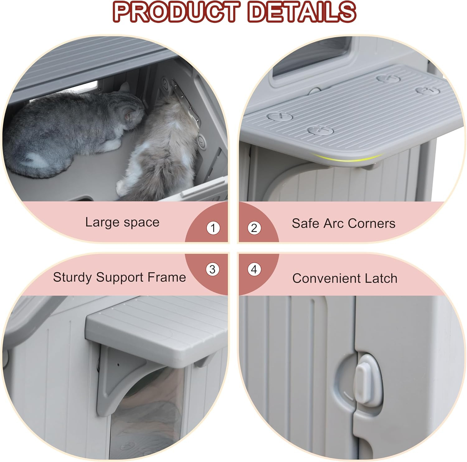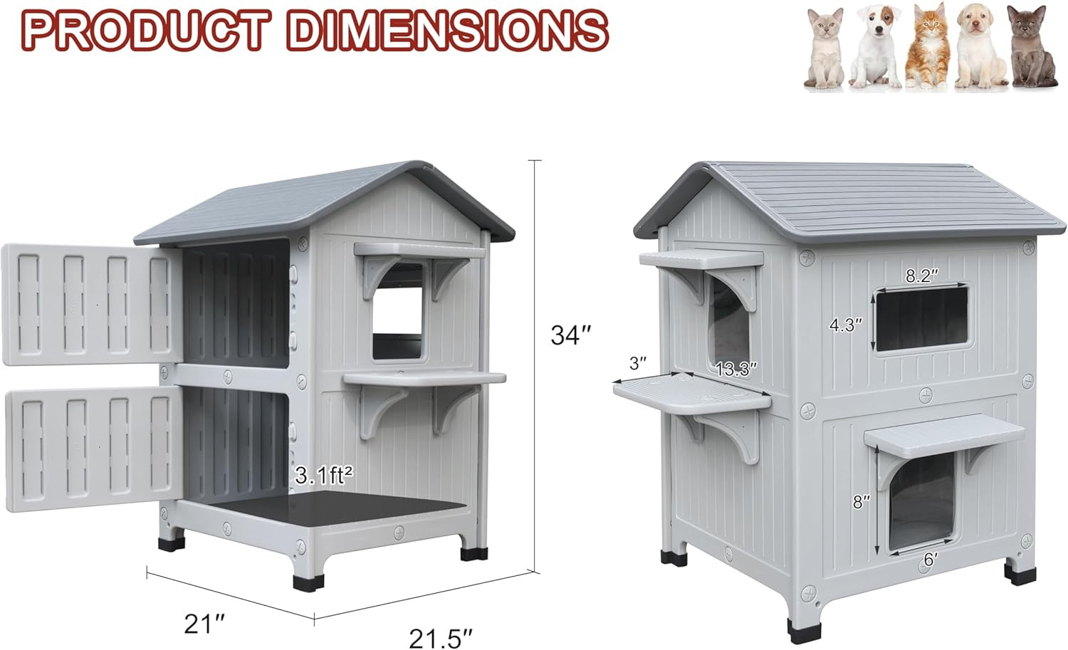 Plastic Insulated Outdoor Cat House with Escape Door, 2 Story Waterproof Cat Hou