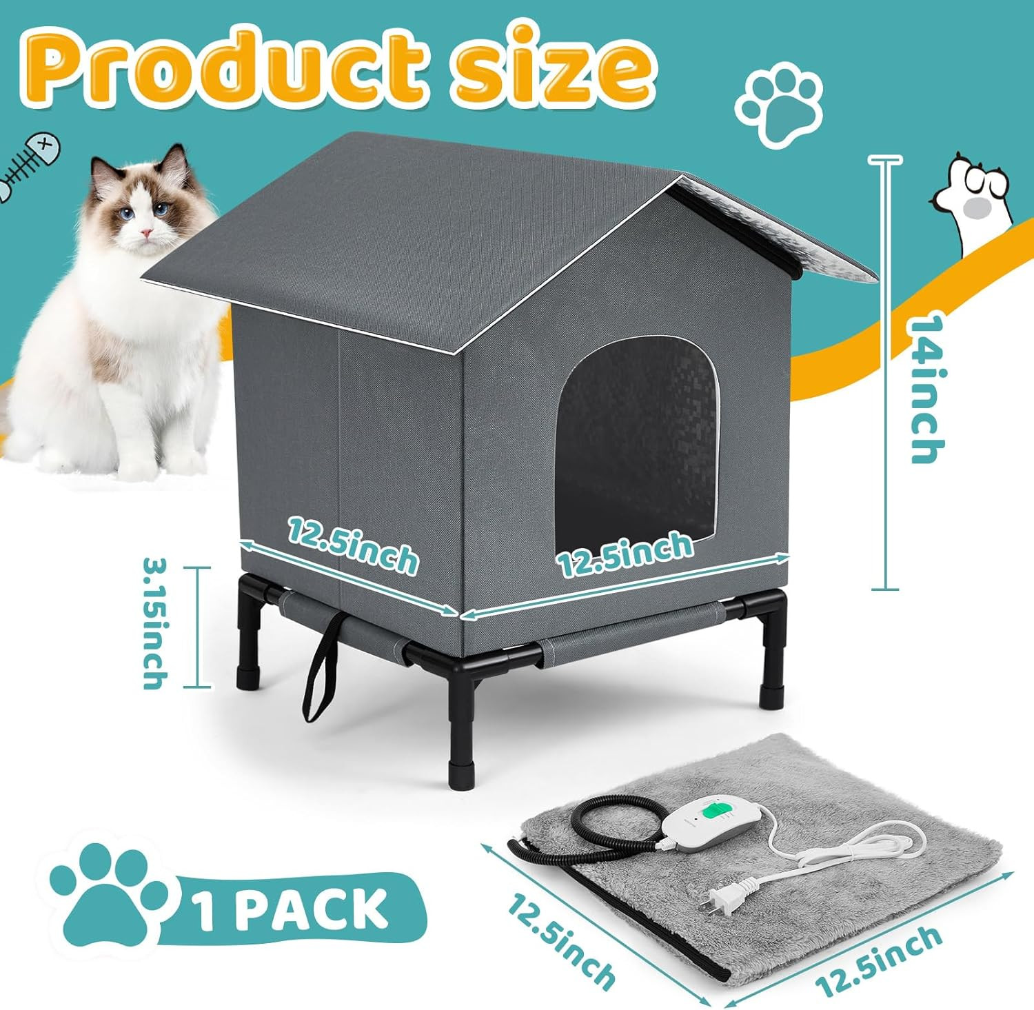 Elevated Heated Cat House for outside 14 12.5 12.5 Inches Winter Removable C