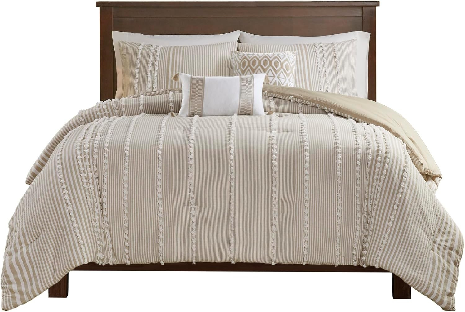 Trendy Taupe 100 Cotton Duvet Set with Pom Poms - King Size 3 Piece Set