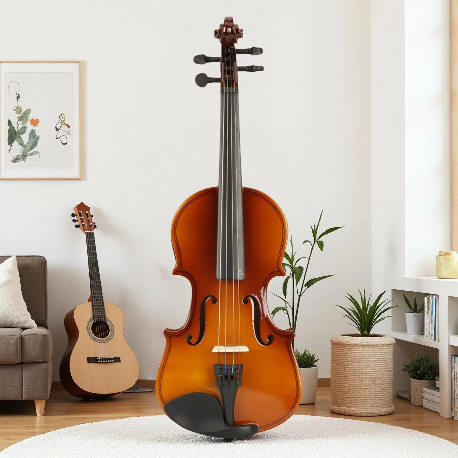 1/8 Size Kids Acoustic Beginner Violin Set - Case, Bow Rosin, Natural