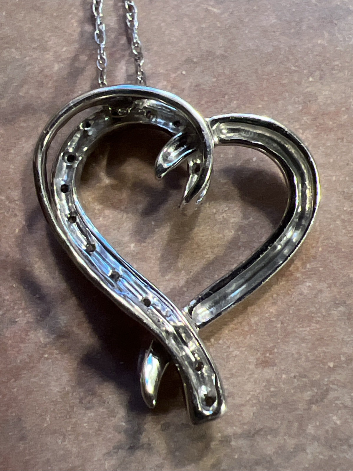 10k White Gold Diamond Heart Pendant With 10k Chain Necklace