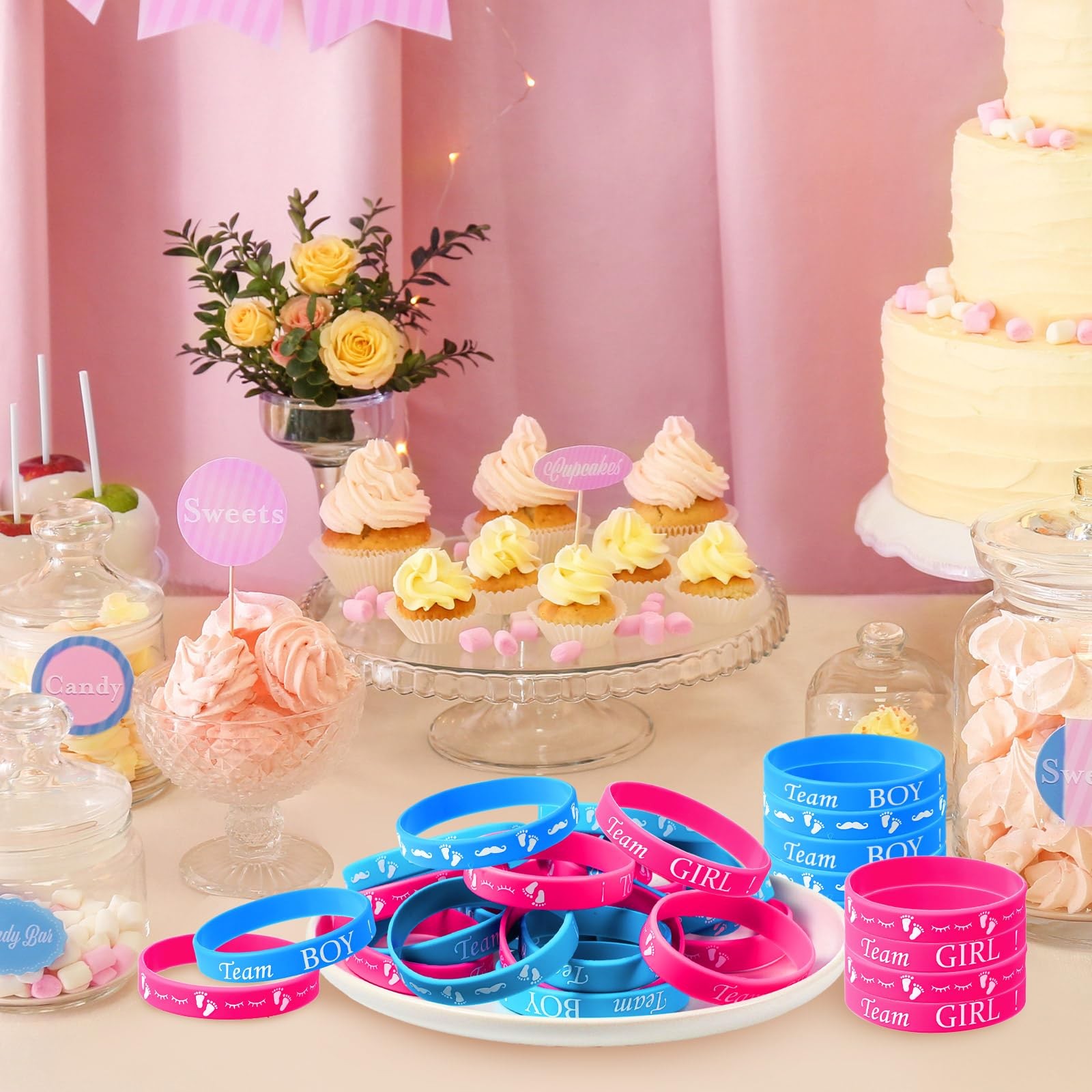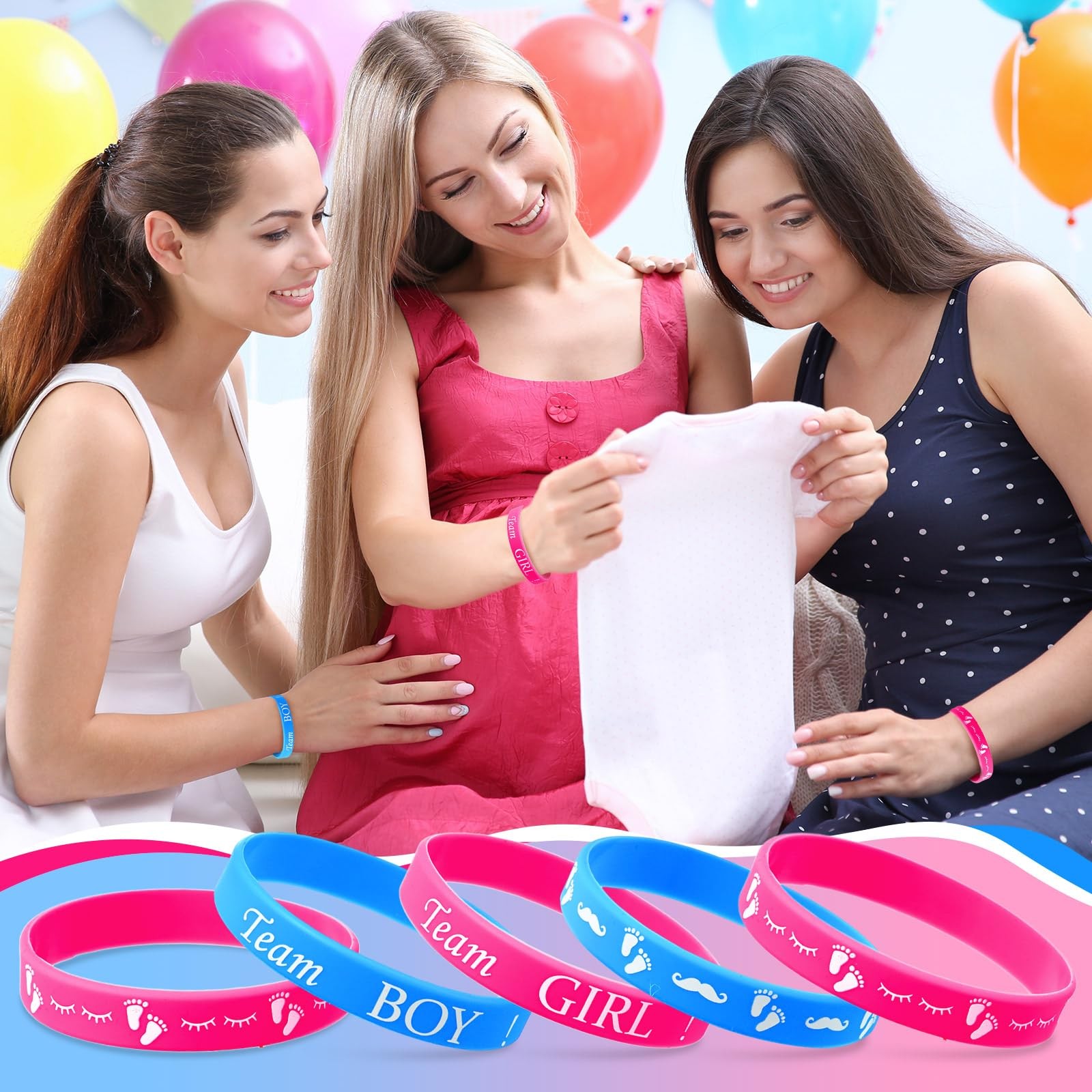 30 Pcs Gender Reveal Bracelets Team Boy/Girl Silicone Wristbands for Baby Shower