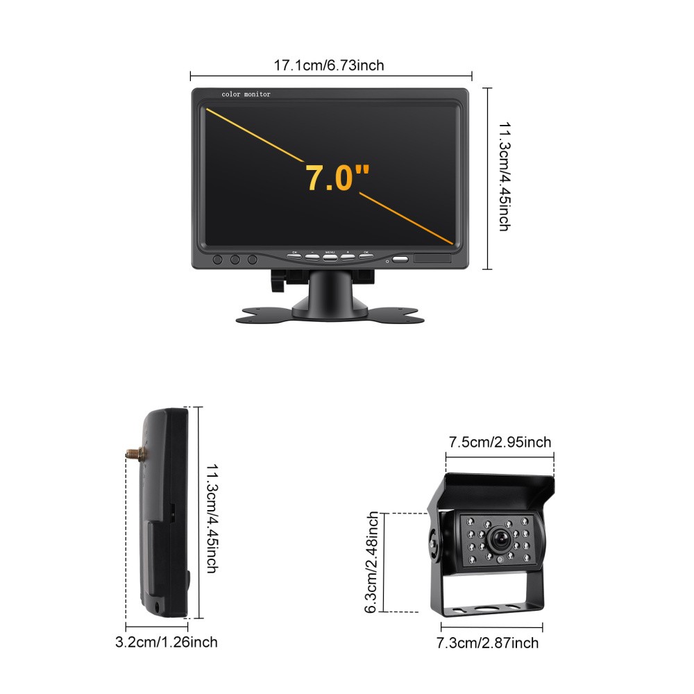 7 Monitor Digital Wireless Rear View Backup Camera Kit for Truck Trailer Bus RV