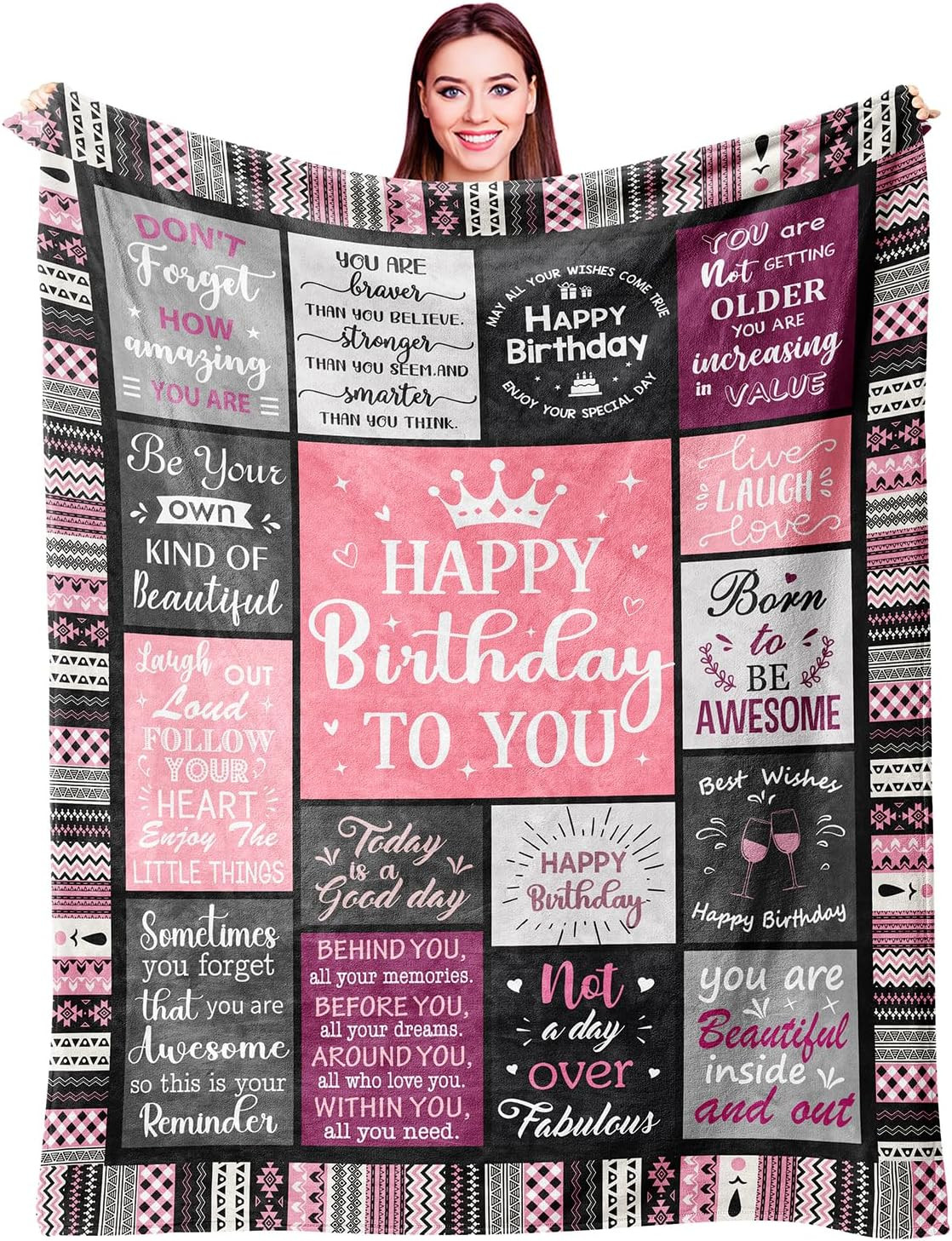 Birthday Gifts for Women Girls Throw Blanket 60X50, Happy Birthday Decorations