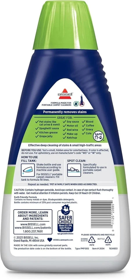 BISSELL PET PRO OXY Spot Stain Formula for Portable Carpet Cleaners, 32 Oz., 2