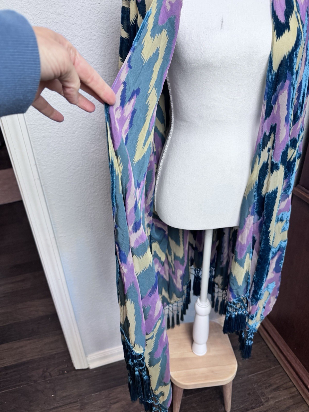 как выглядит Free People Women s Size OS One Size Velvet Burnout Fringe Kimono фото