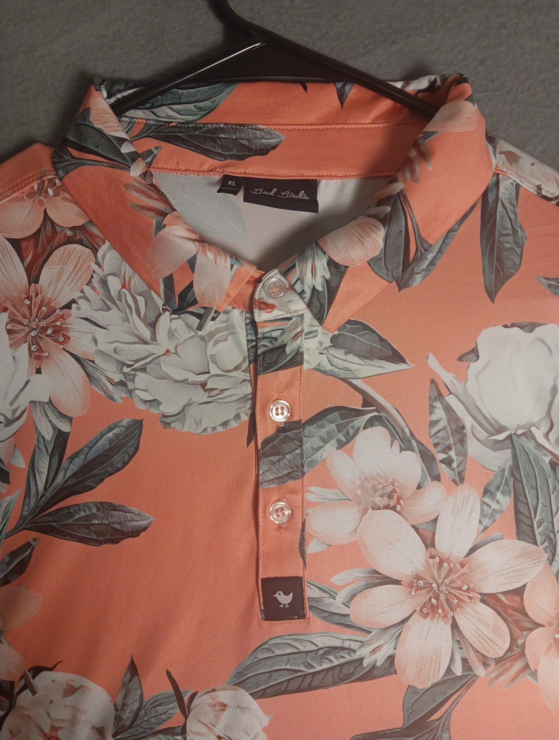 Bad Birdie Polo Shirt Mens XL Floral Hawaiian Golf Performance Stretch